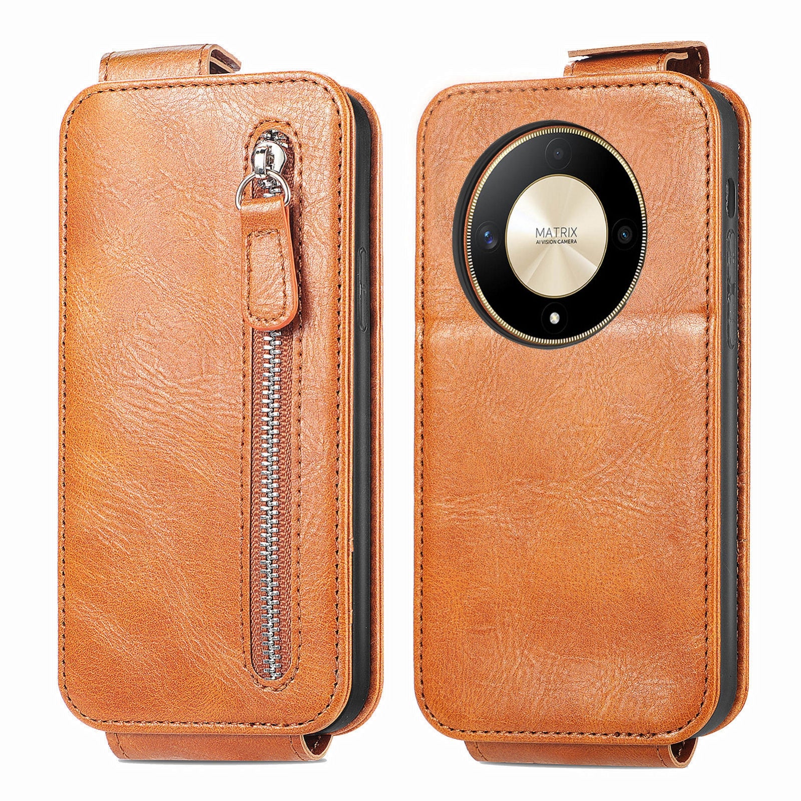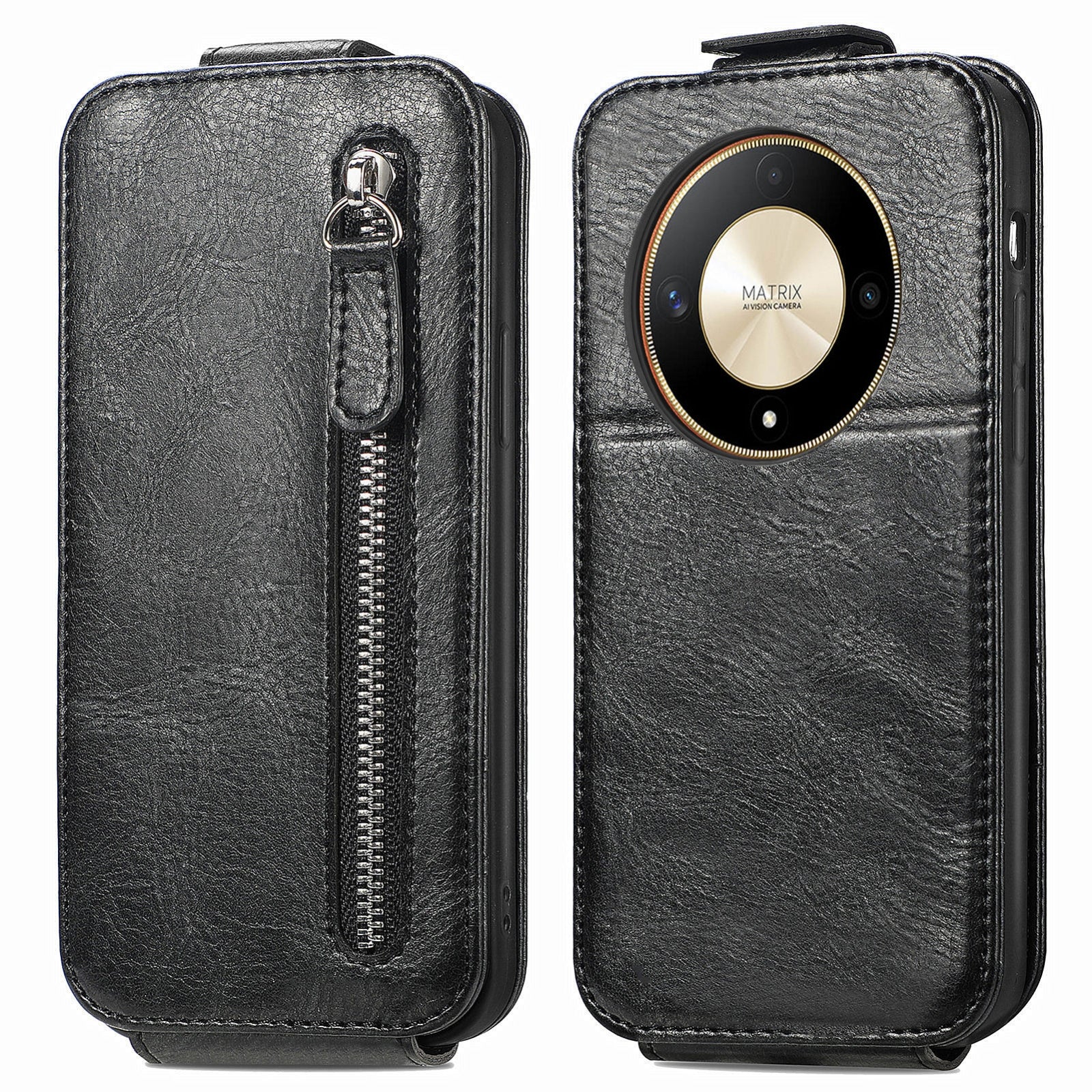 Honor X9b Zipper Wallet Case - Vertical Flip Leather Phone Cover with Multiple Card Slots and Stand