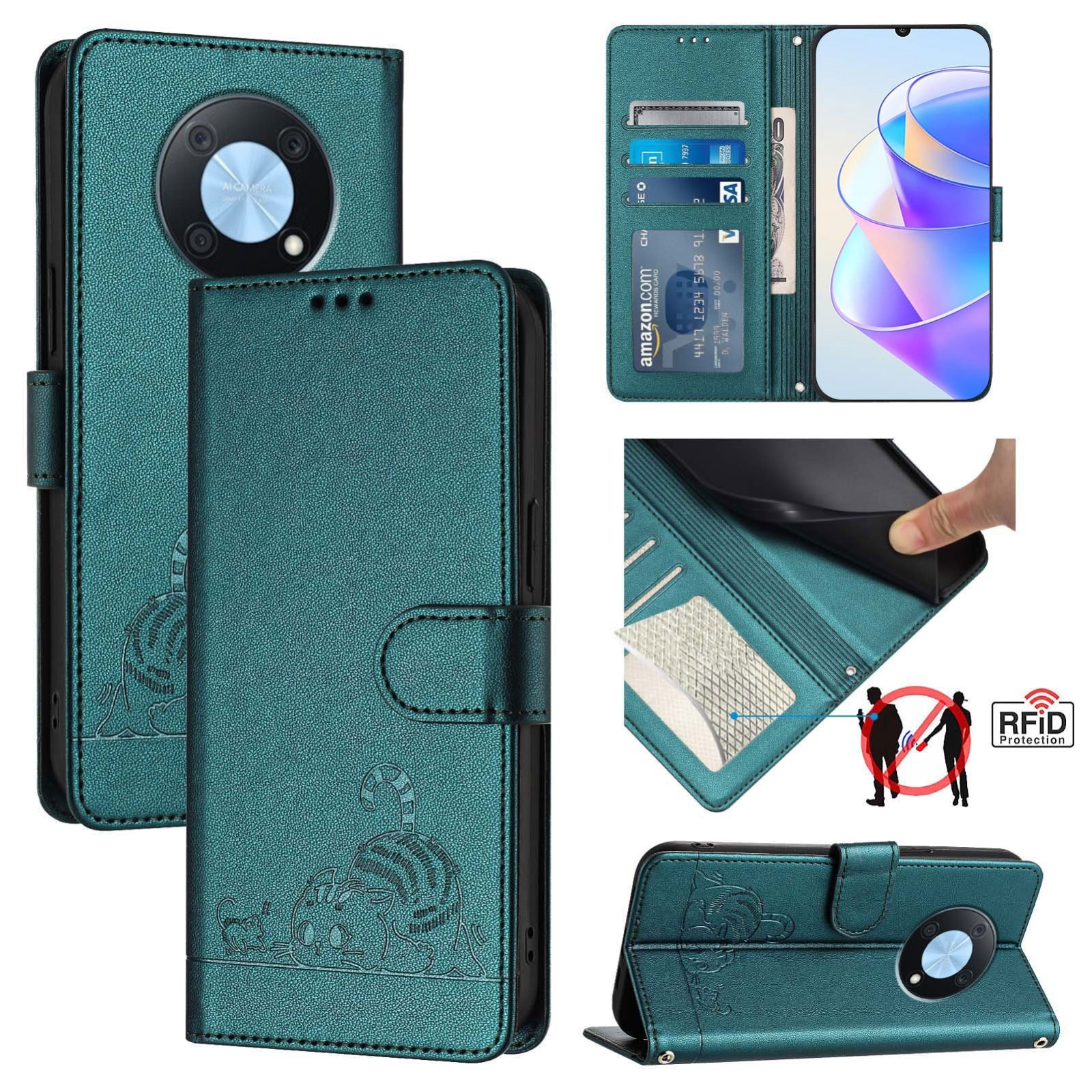 Huawei Enjoy 50 Pro 4G Cat and Rat Embossed Pattern, RFID Leather Phone Case with Lanyard, Kickstand, and Wallet Features