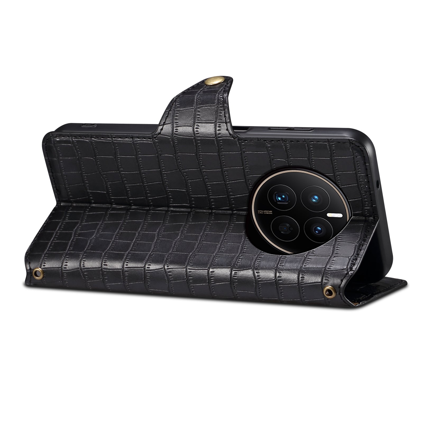 Huawei Mate 50 Denior Leather Case - Crocodile Texture with Oil Edge, Wallet & Kickstand Features