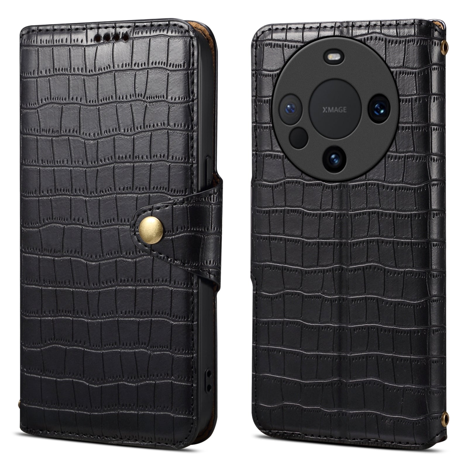 Huawei Mate 60 Denior Leather Case - Crocodile Texture with Oil Edge, Wallet & Kickstand Features