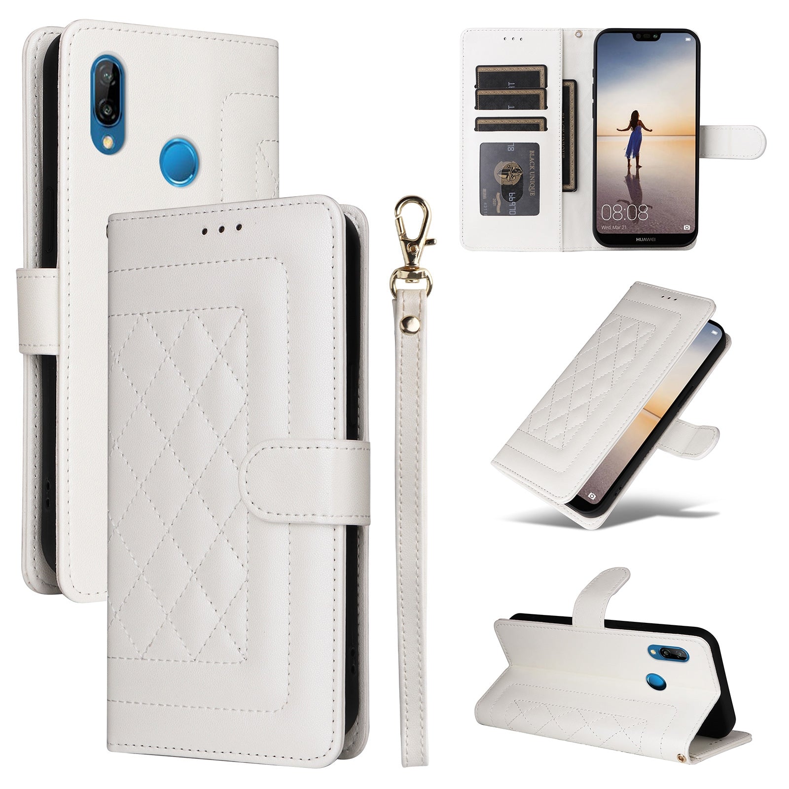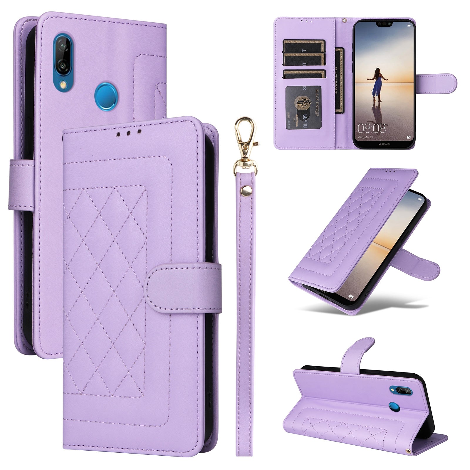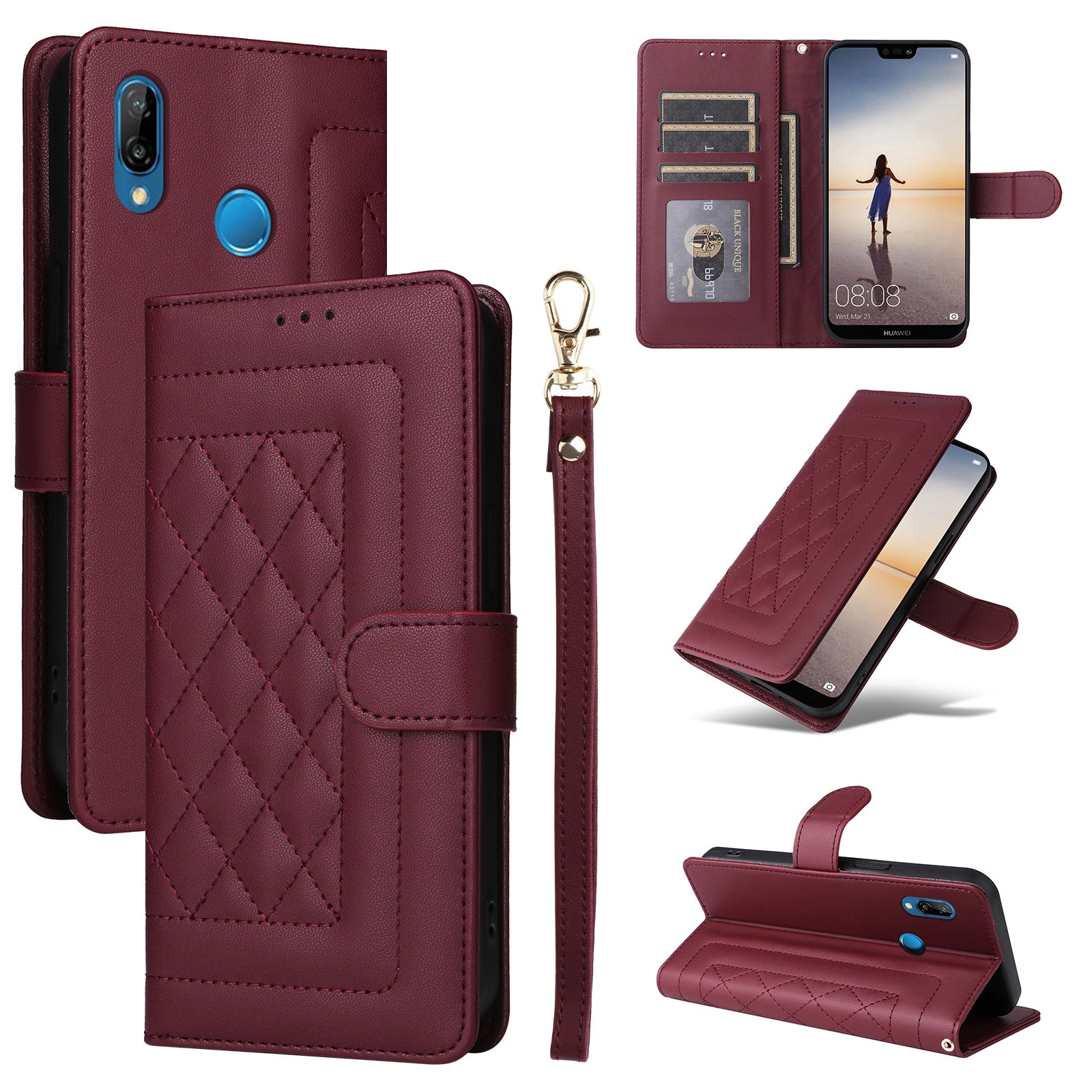 Huawei P20 Lite Diamond Lattice Leather Flip Phone Case - Durable and Convenient Holder with Precision Cutouts