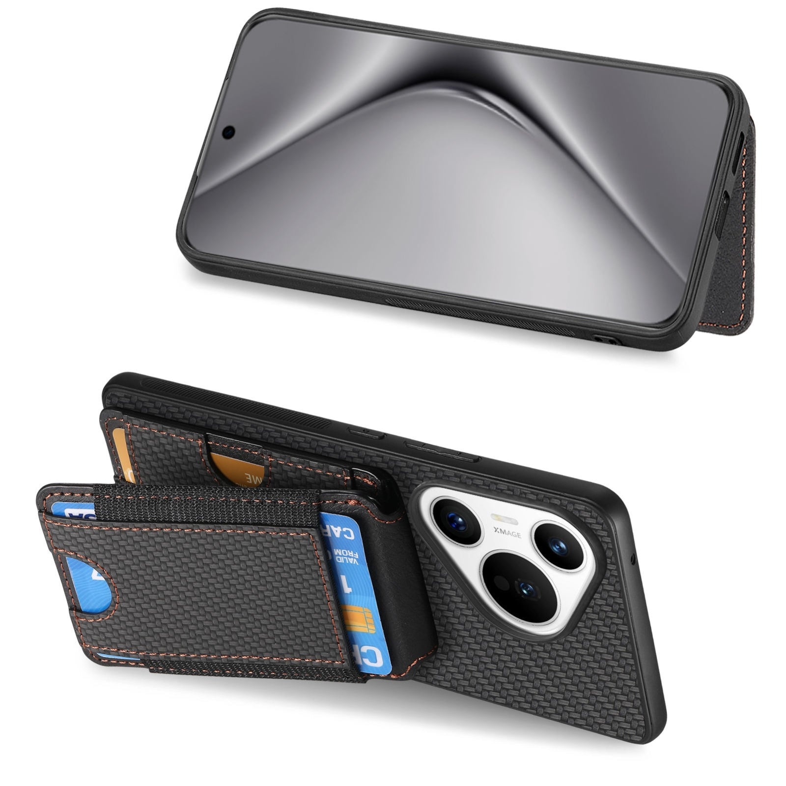 Huawei Pura 70 Ultra Vertical Flip Wallet Stand Phone Case with Carbon Fibre Pattern