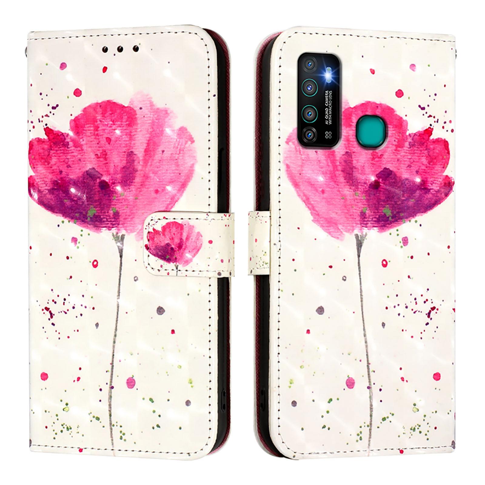 Infinix Hot 9 Leather Flip Phone Case with 3D Painted Design, Card Holder, Wallet & Stand Function - Durable Protection & Easy Access