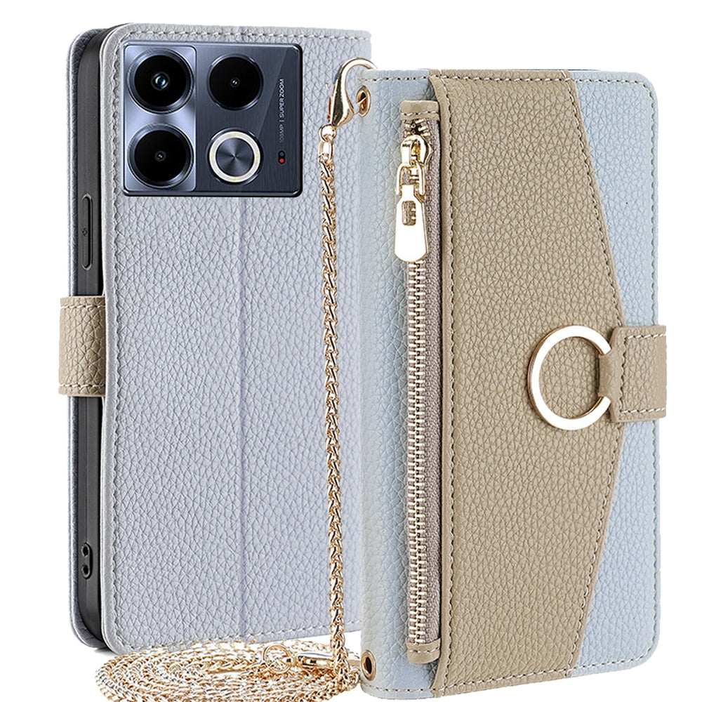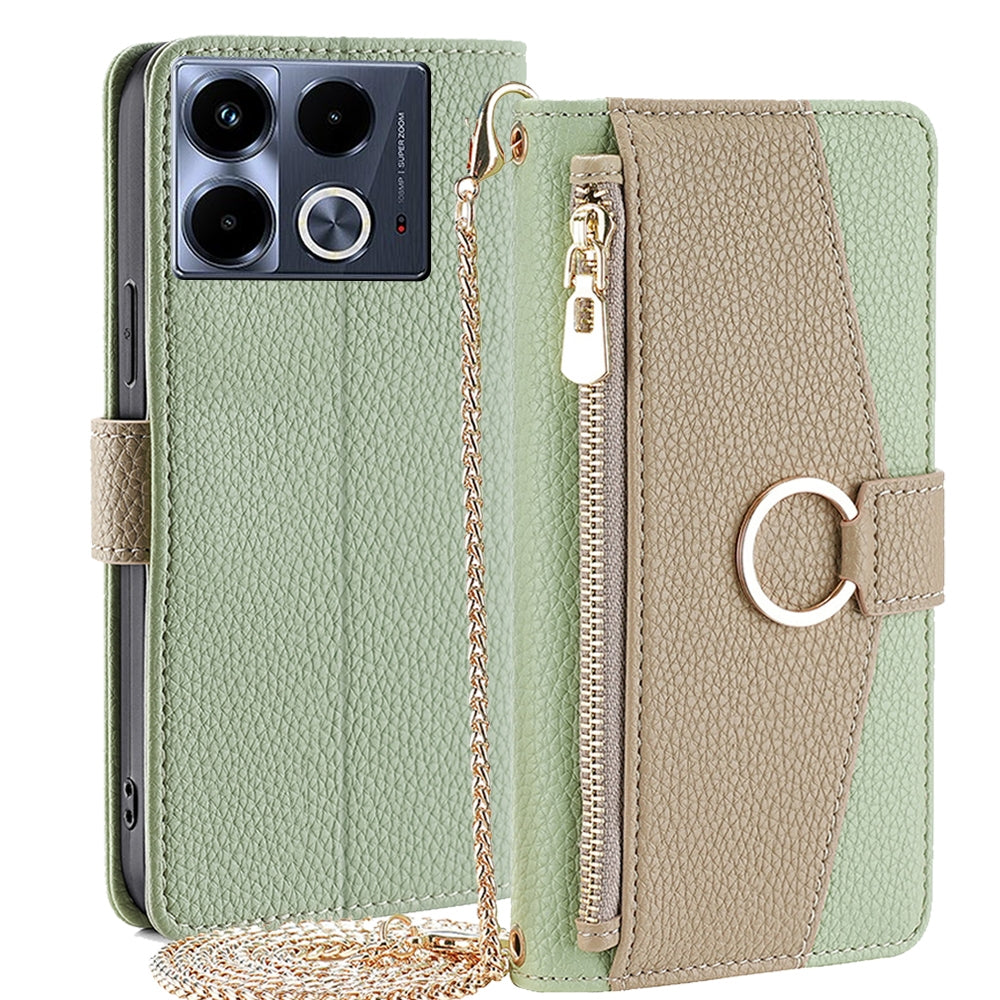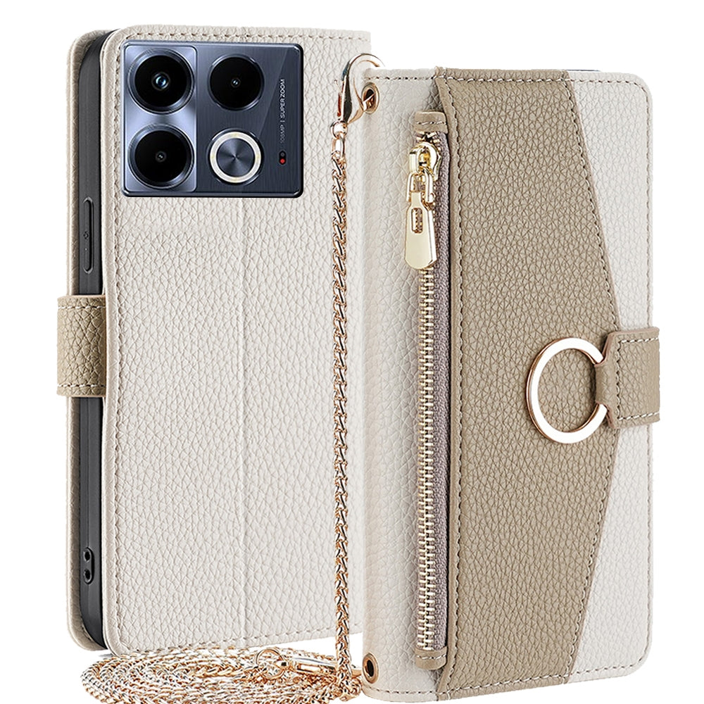 Infinix Note 40 4G Crossbody Phone Case with Litchi Texture Leather, Adjustable Kickstand, Card Slots, Zipper Purse, Makeup Mirror, and TPU Protection