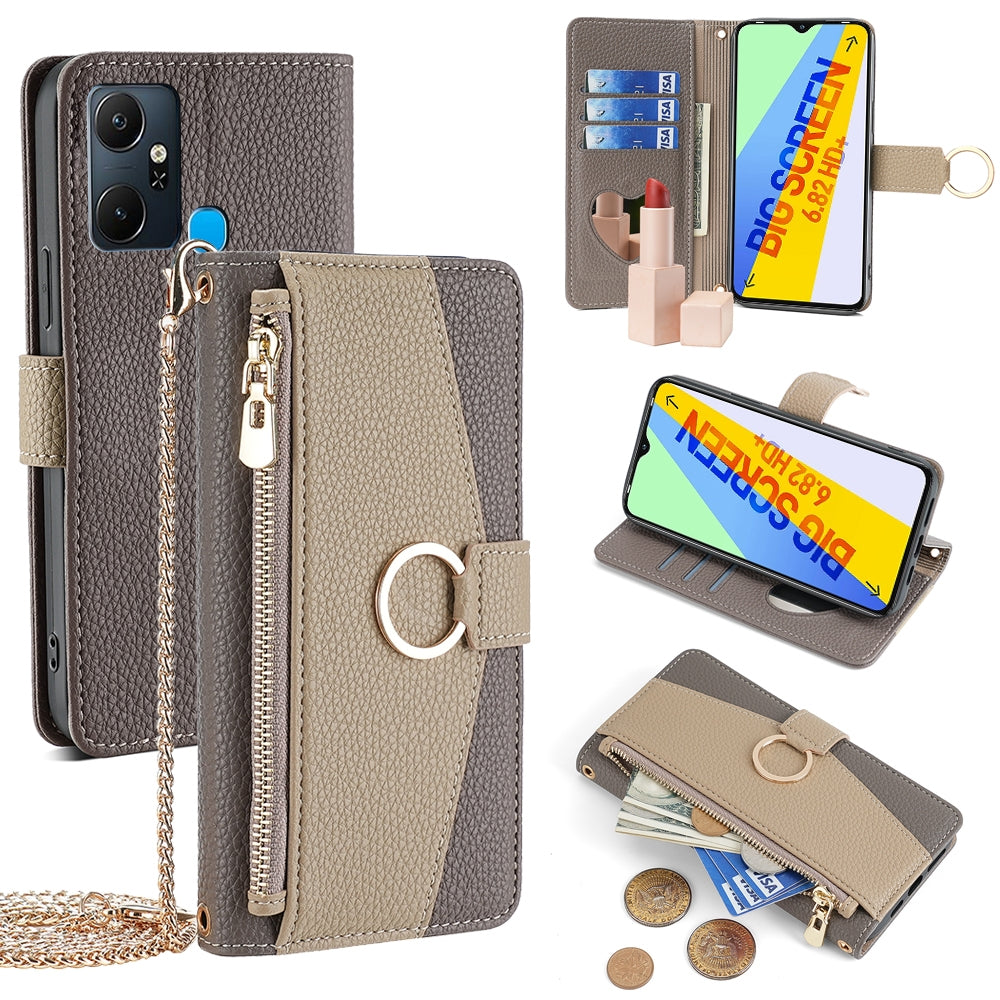 Infinix Smart 6 Plus Crossbody Phone Case with Litchi Texture Leather, Adjustable Kickstand, Card Slots, Zipper Purse, Makeup Mirror, and TPU Protection