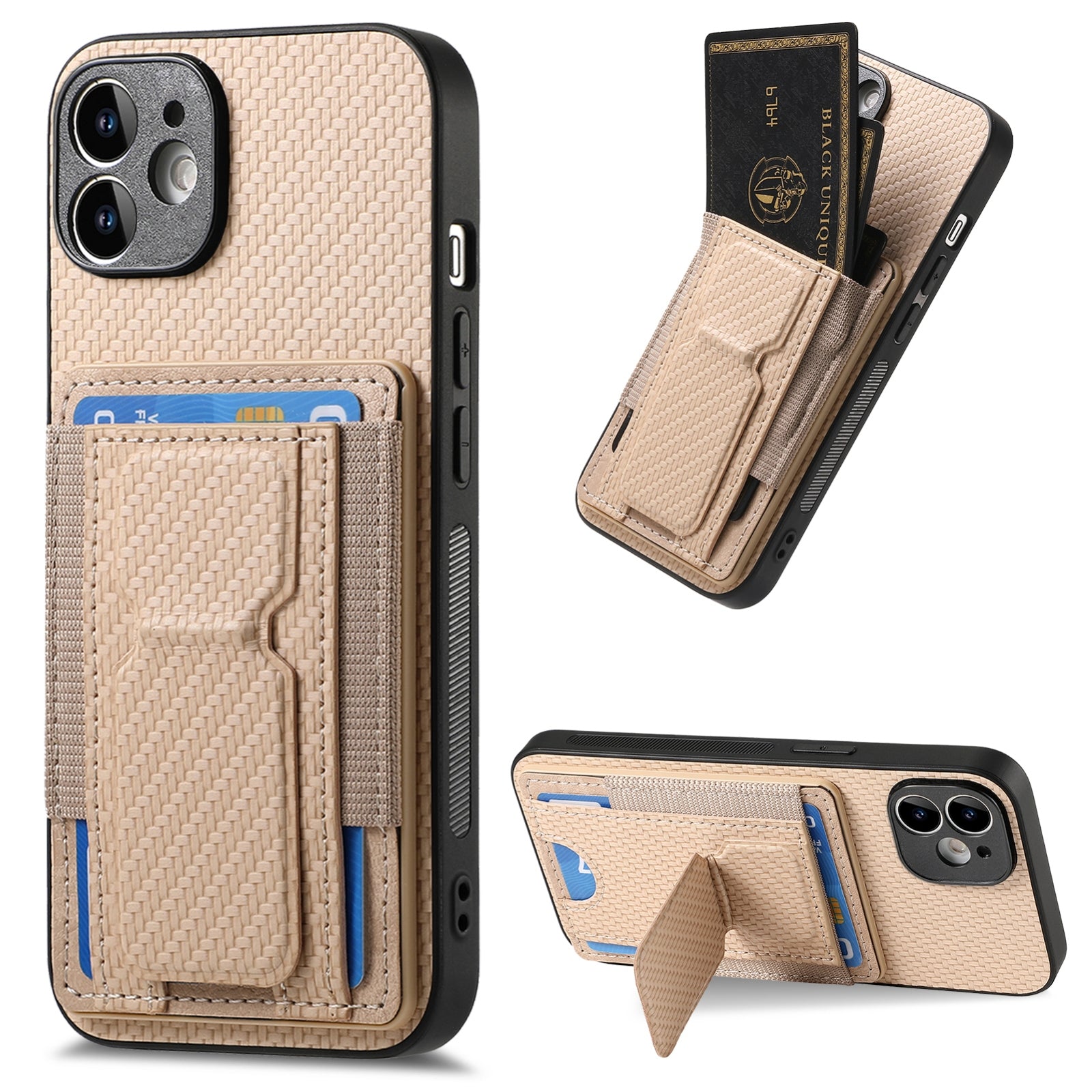 iPhone 11 Carbon Fiber Fold Stand Elastic Card Bag Phone Case with Multi-Functional Wallet