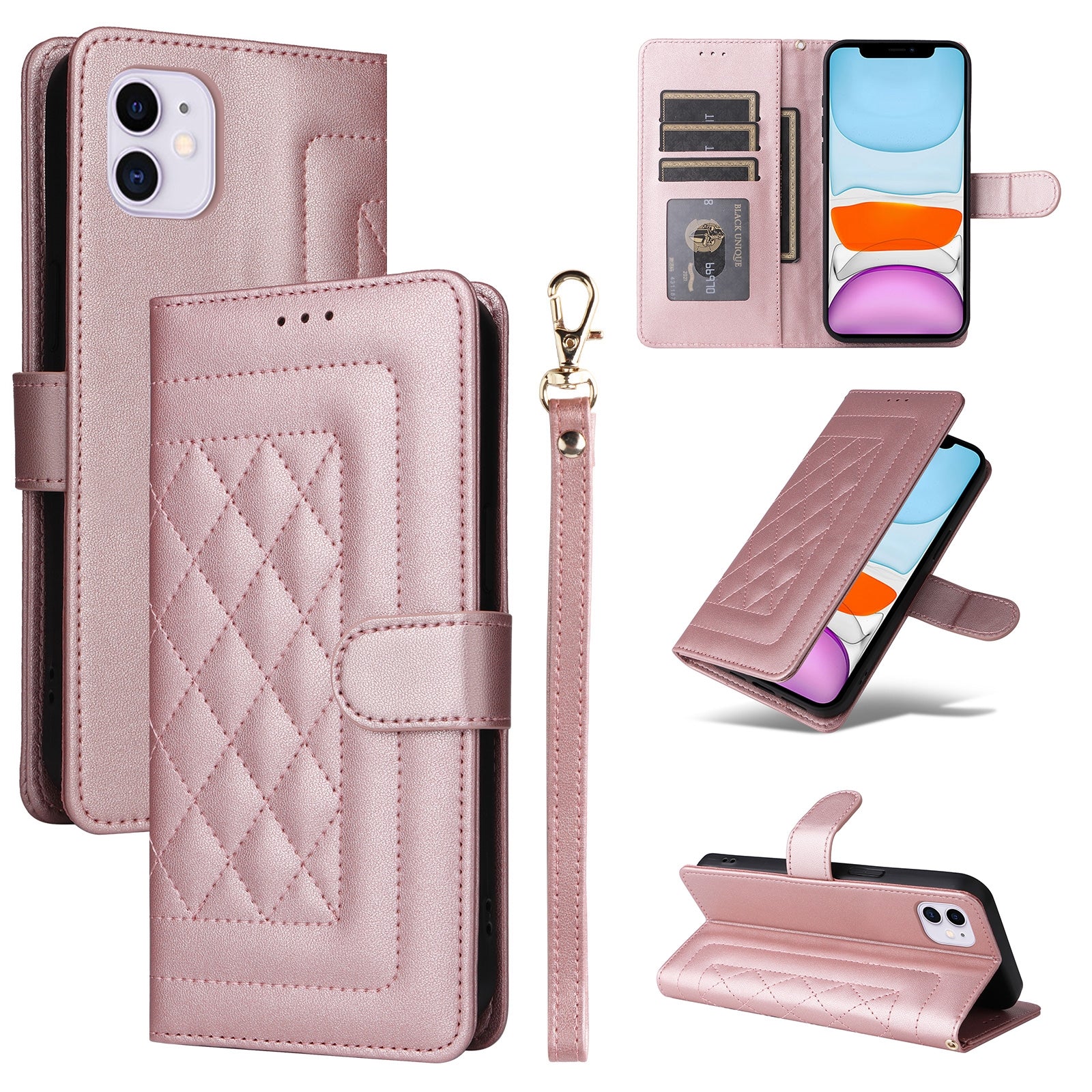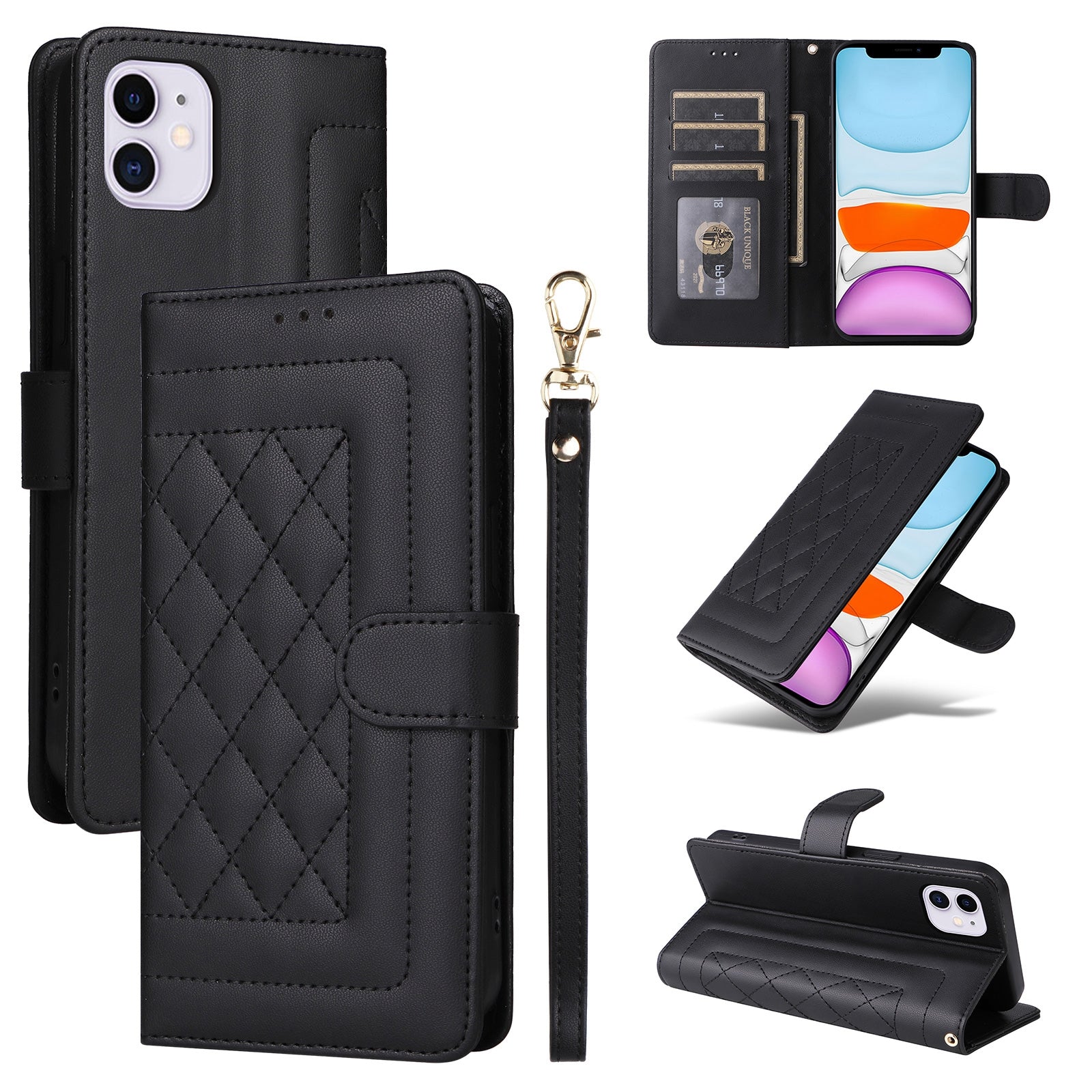 iPhone 11 Diamond Lattice Leather Flip Phone Case - Durable and Convenient Holder with Precision Cutouts