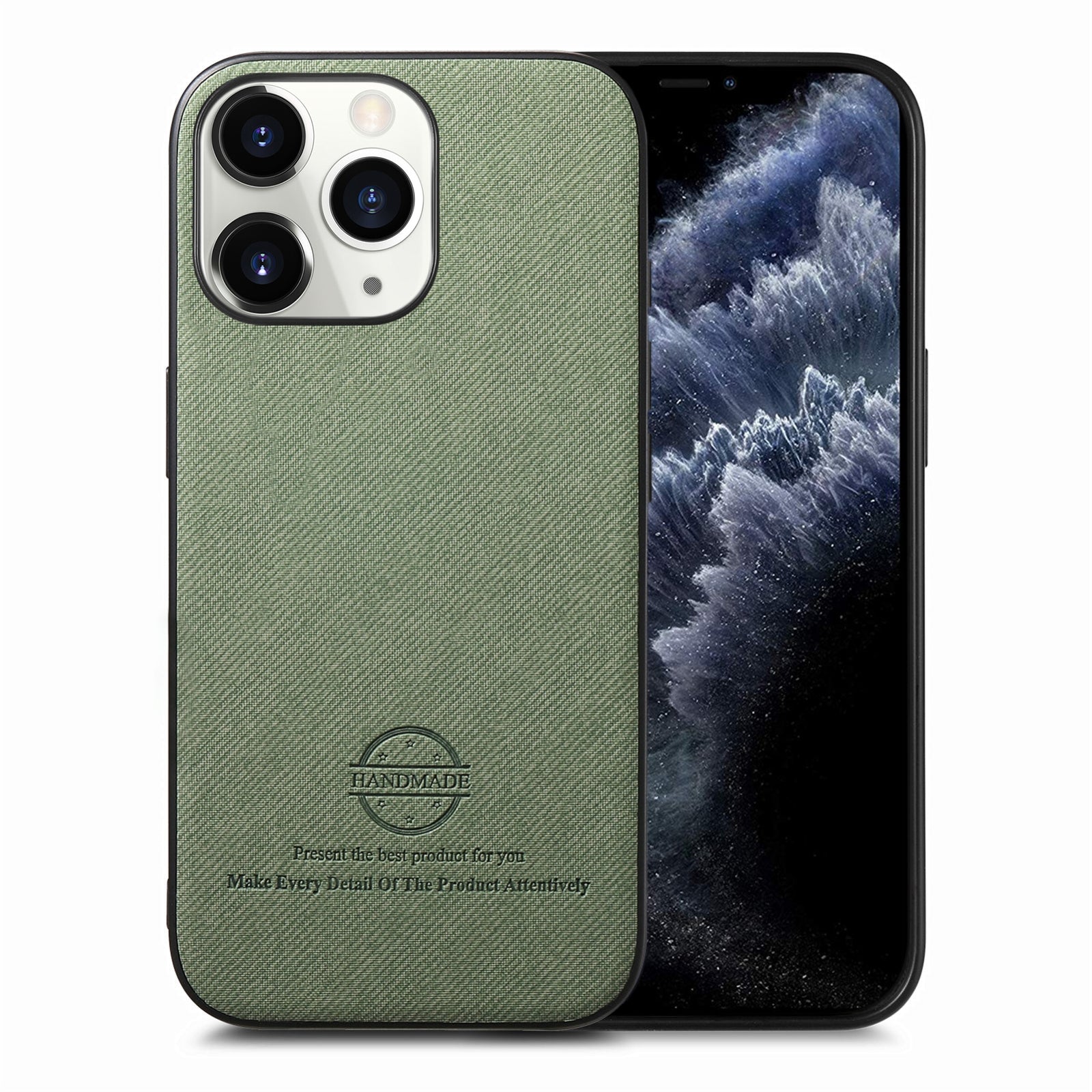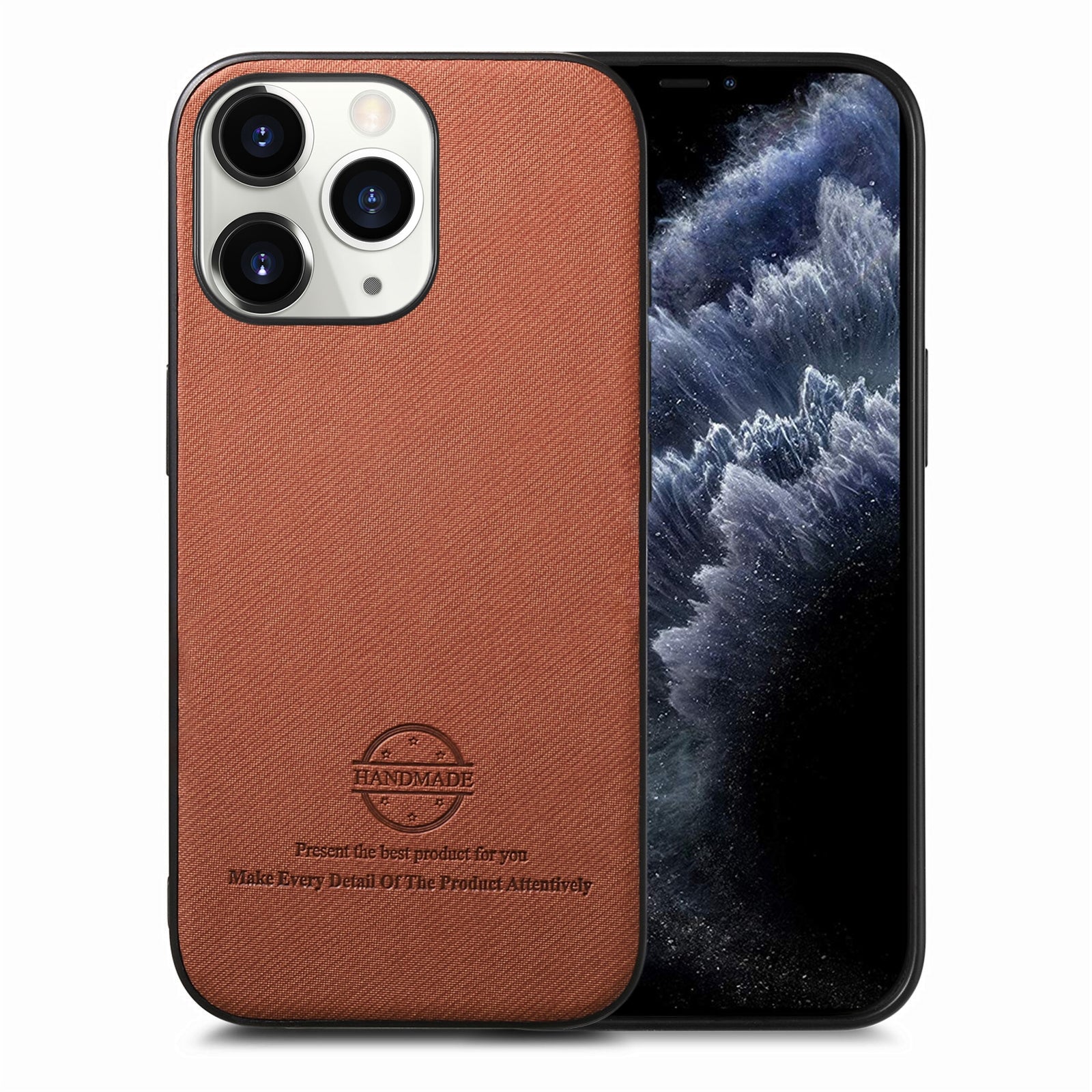 iPhone 11 Pro Max Case - Vegan Leather and Twill Fabric Skin with Anti-Scratch and Drop Protection Back Phone Case