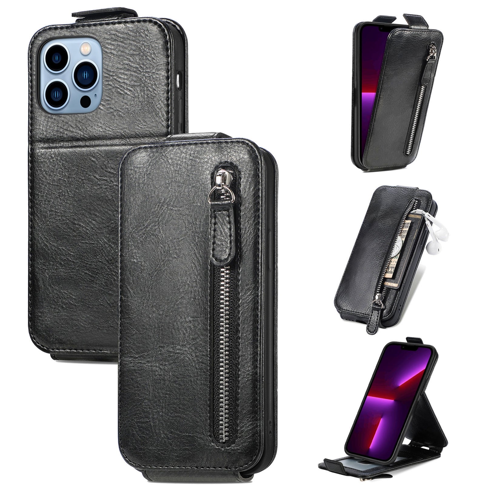 iPhone 11 Pro Max Zipper Wallet Case - Vertical Flip Leather Phone Cover with Multiple Card Slots and Stand