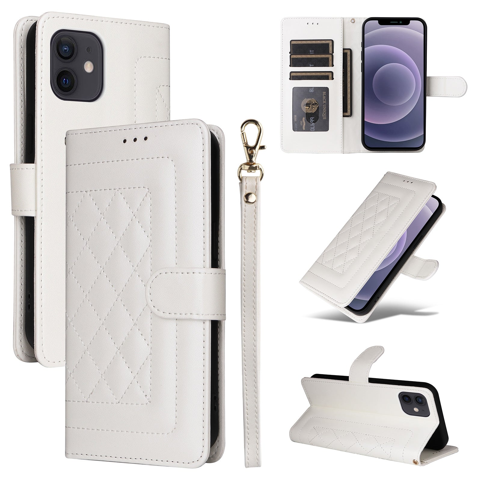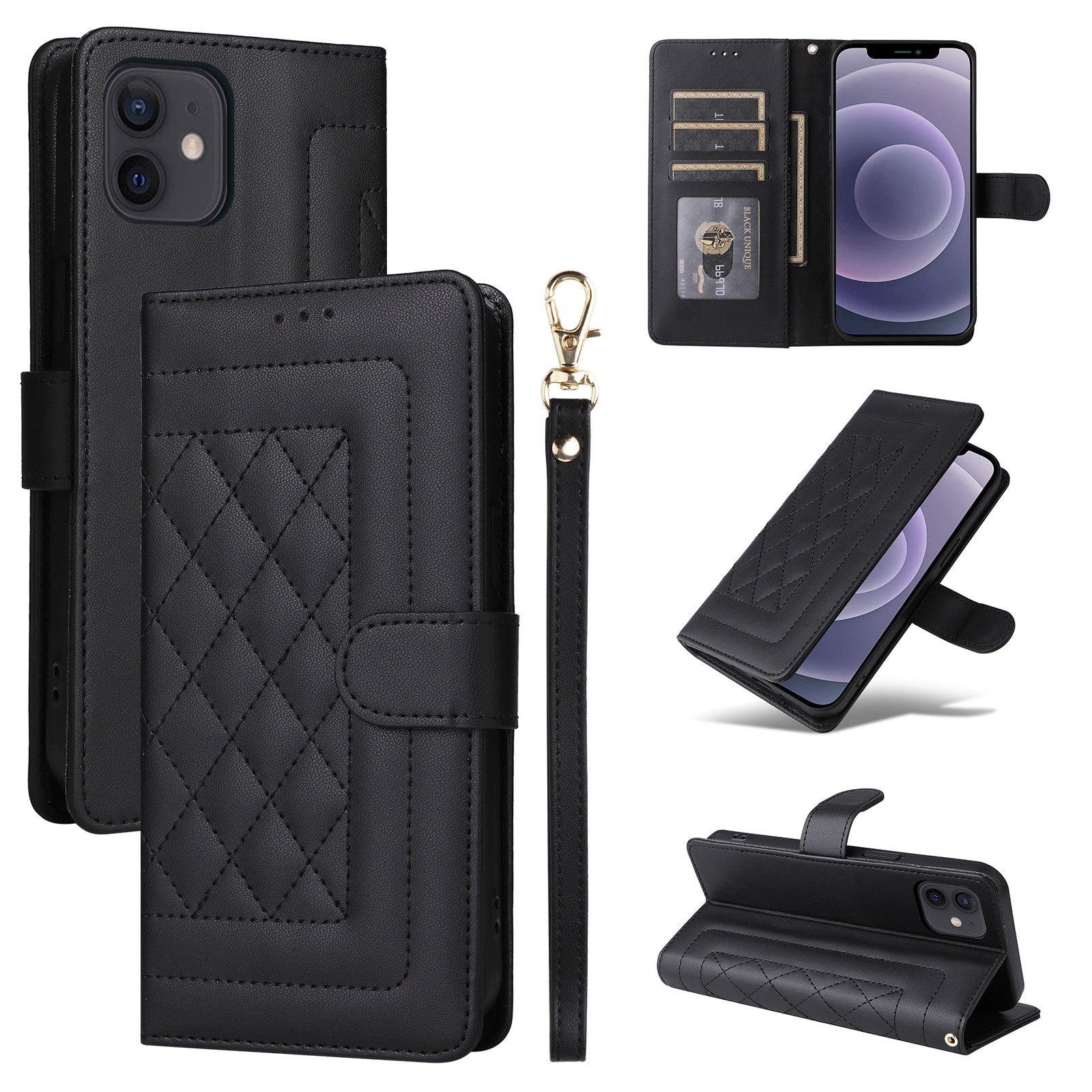 iPhone 12 / 12 Pro Diamond Lattice Leather Flip Phone Case - Durable and Convenient Holder with Precision Cutouts