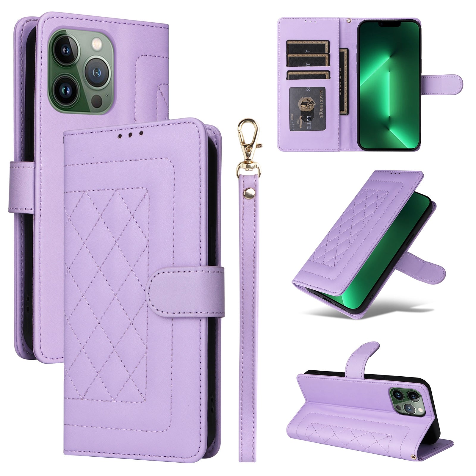 iPhone 13 Pro Diamond Lattice Leather Flip Phone Case - Durable and Convenient Holder with Precision Cutouts