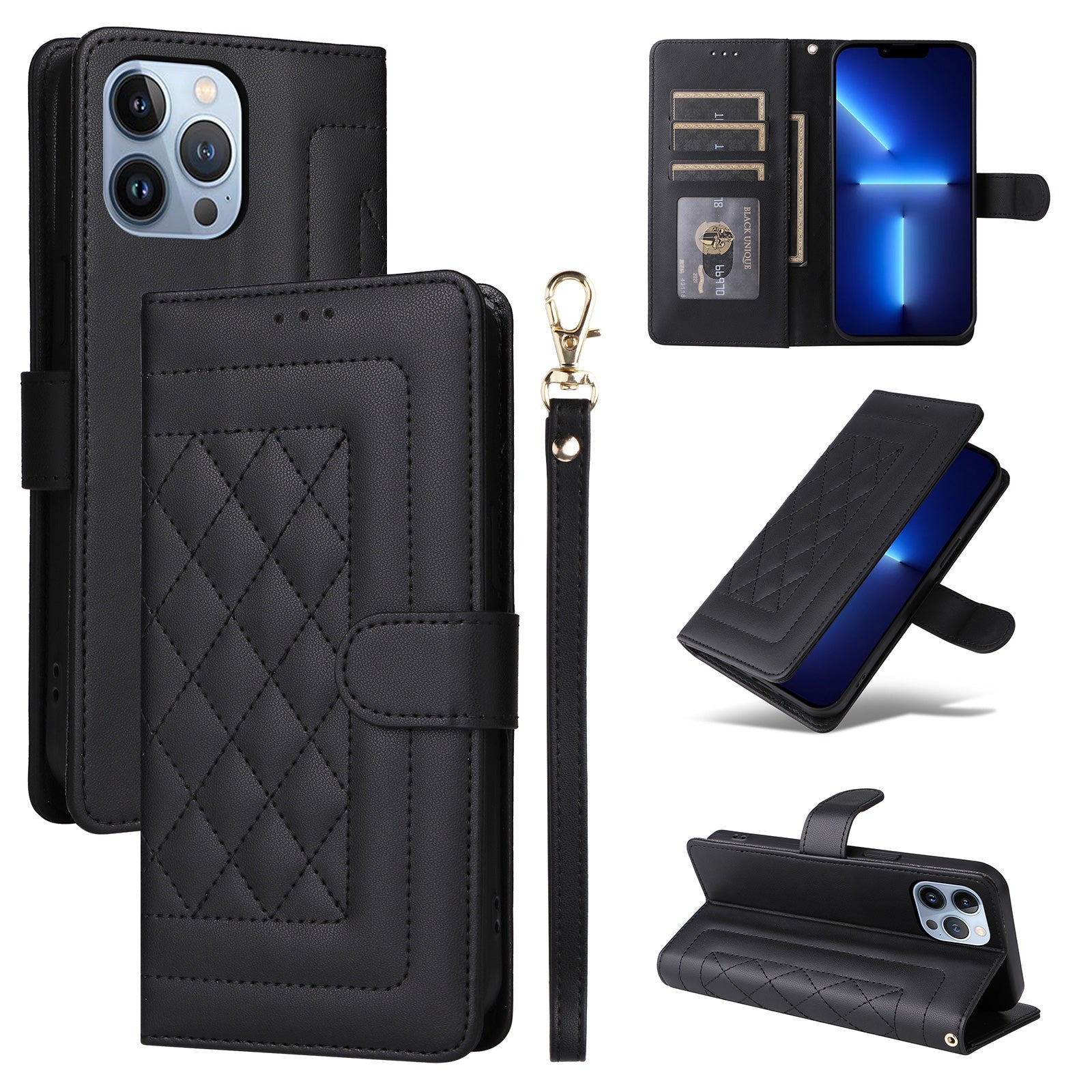iPhone 13 Pro Max Diamond Lattice Leather Flip Phone Case - Durable and Convenient Holder with Precision Cutouts