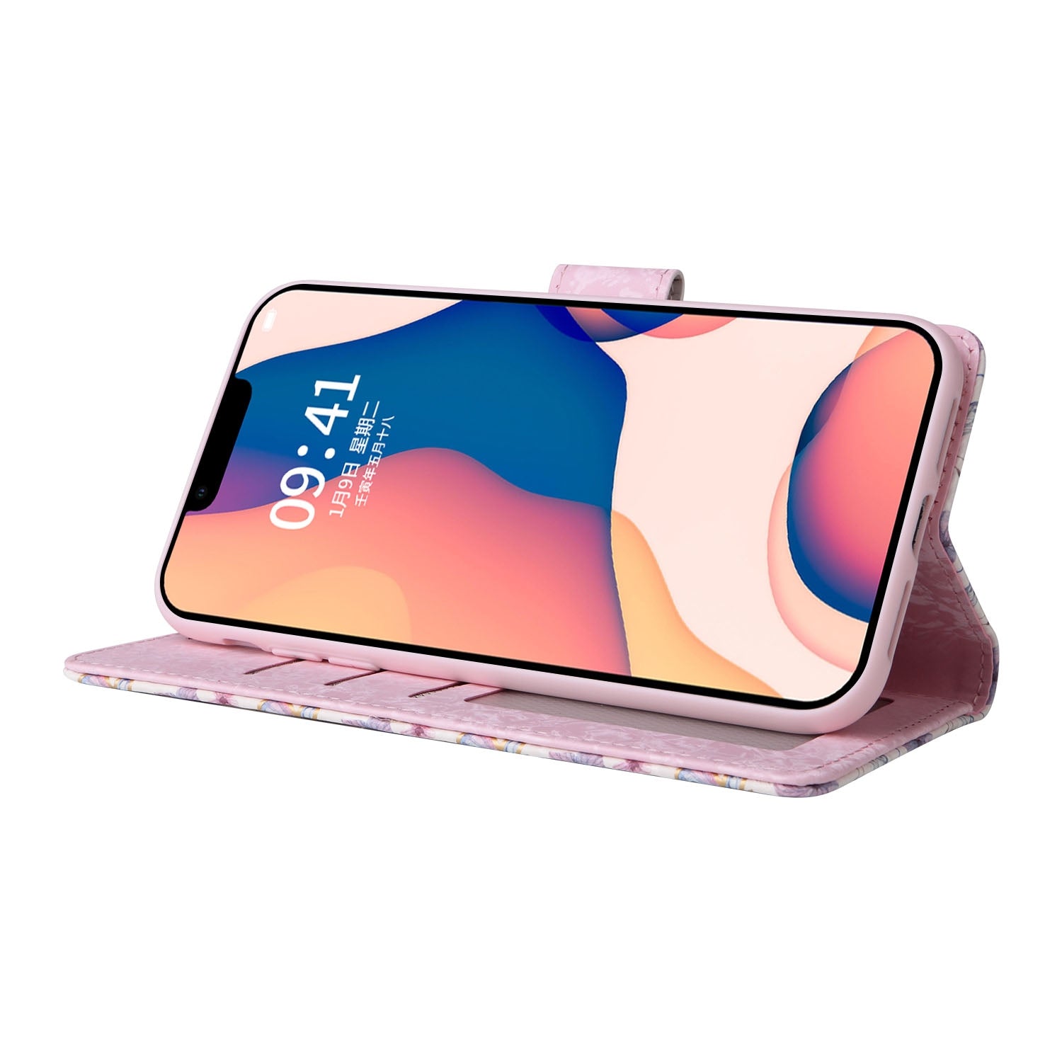 iPhone 14 Luxury Bronzing Leather Case - Floral RFID Wallet Cover with Stand & Card Slots
