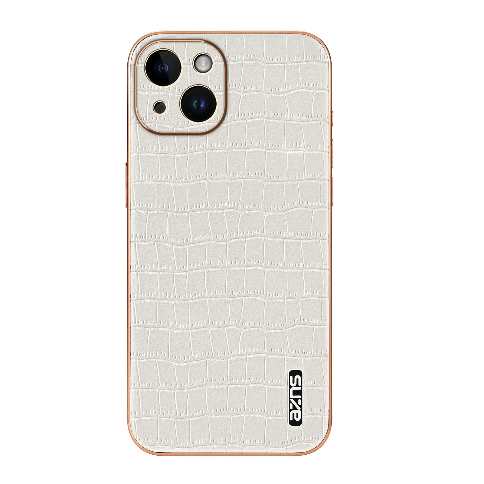 iPhone 14 Luxury Case - Electroplated Frame, Crocodile Texture Leather, Full Coverage Protection, Anti-Fingerprint & Shockproof