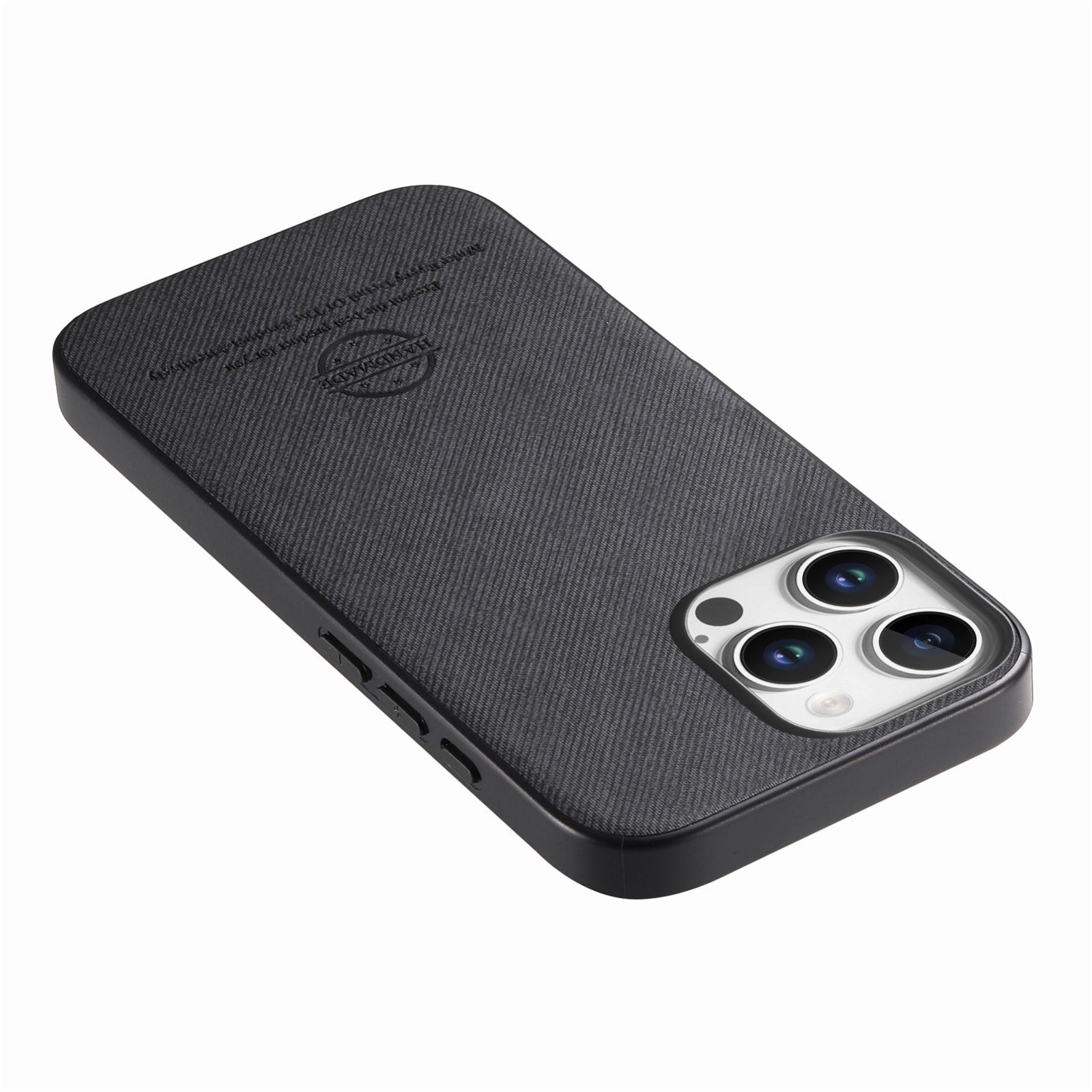 iPhone 14 Plus Case - Vegan Leather and Twill Fabric Skin with Anti-Scratch and Drop Protection Back Phone Case