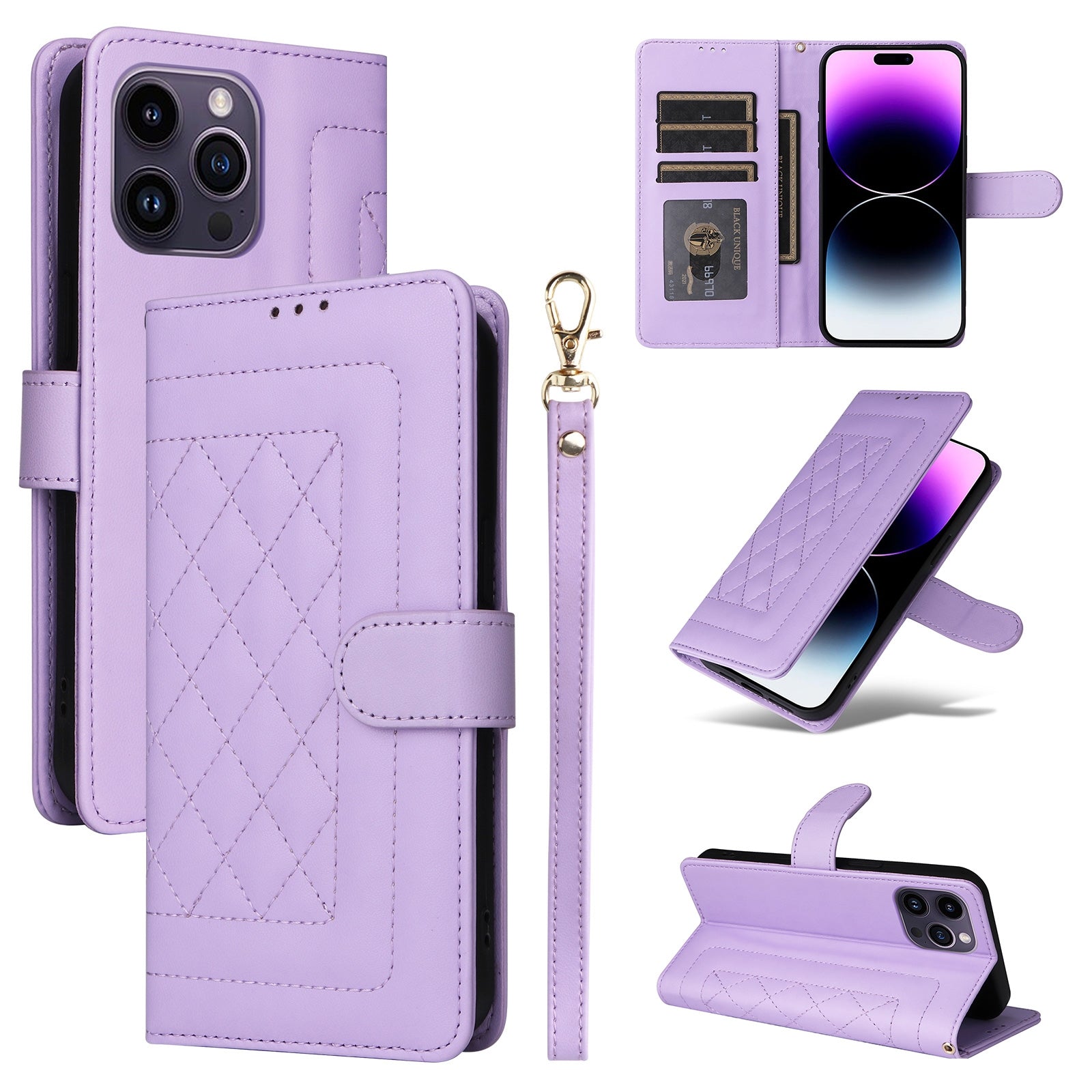 iPhone 14 Pro Max Diamond Lattice Leather Flip Phone Case - Durable and Convenient Holder with Precision Cutouts