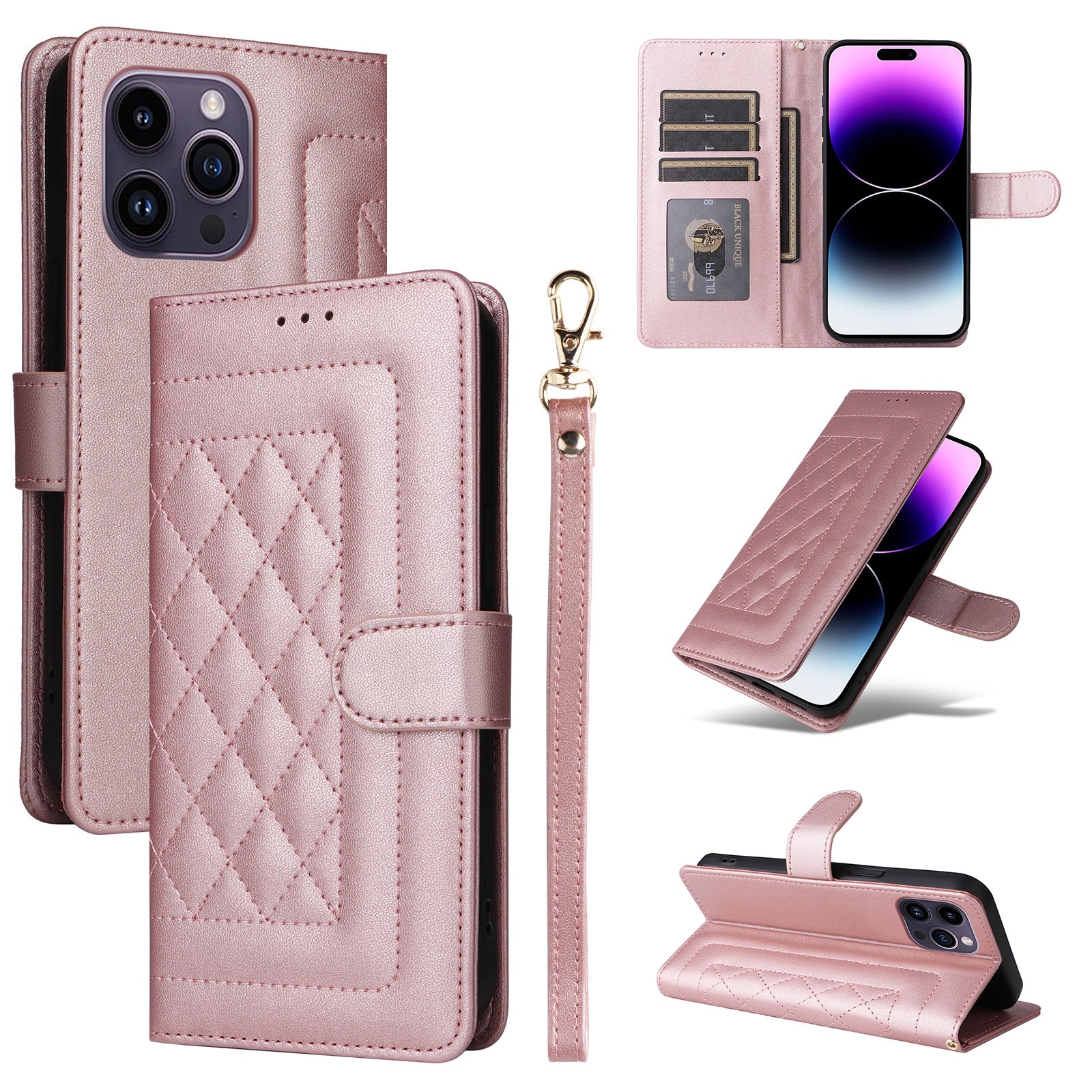 Introducing the ultimate companion for your iPhone 14 Pro Max - our Diamond Lattice Leather Flip Phone Case! Crafted from high-quality PU and TPU materials, this case is not only wear-resistant but also durable, ensuring long-lasting protection and style.