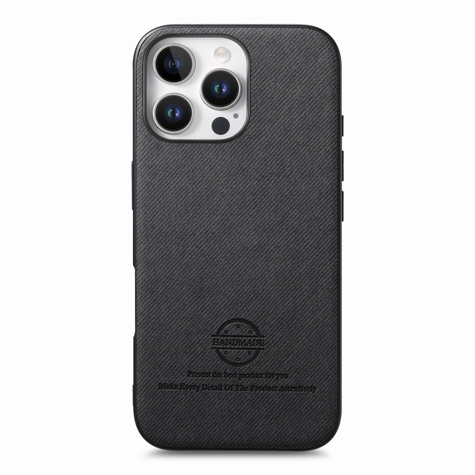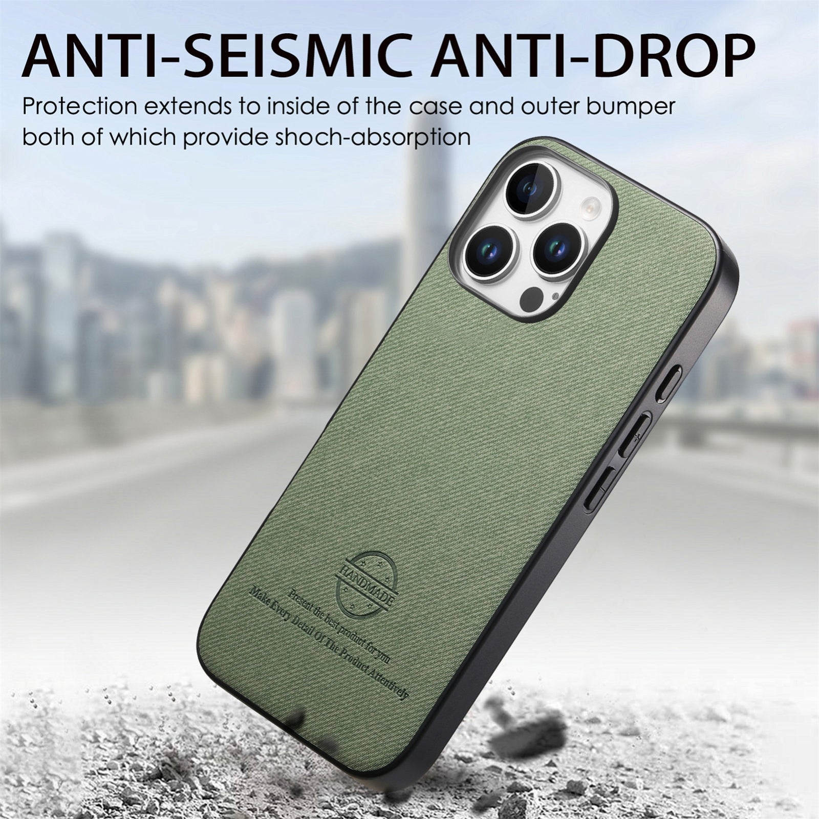 iPhone 15 Case - Vegan Leather and Twill Fabric Skin with Anti-Scratch and Drop Protection Back Phone Case