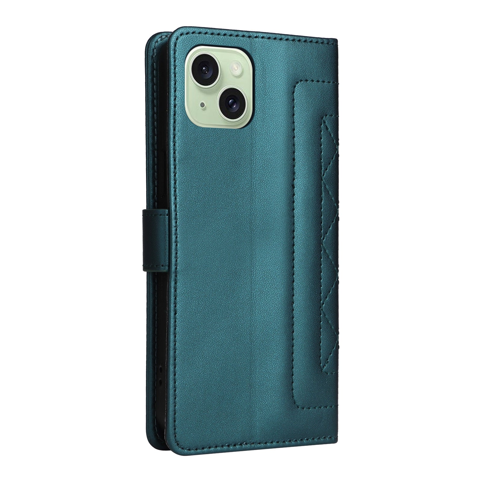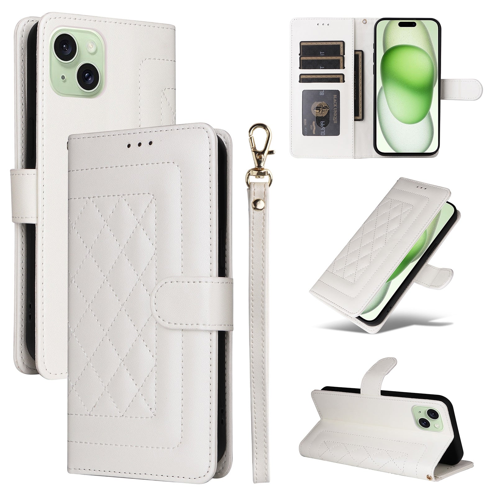 iPhone 15 Plus Diamond Lattice Leather Flip Phone Case - Durable and Convenient Holder with Precision Cutouts