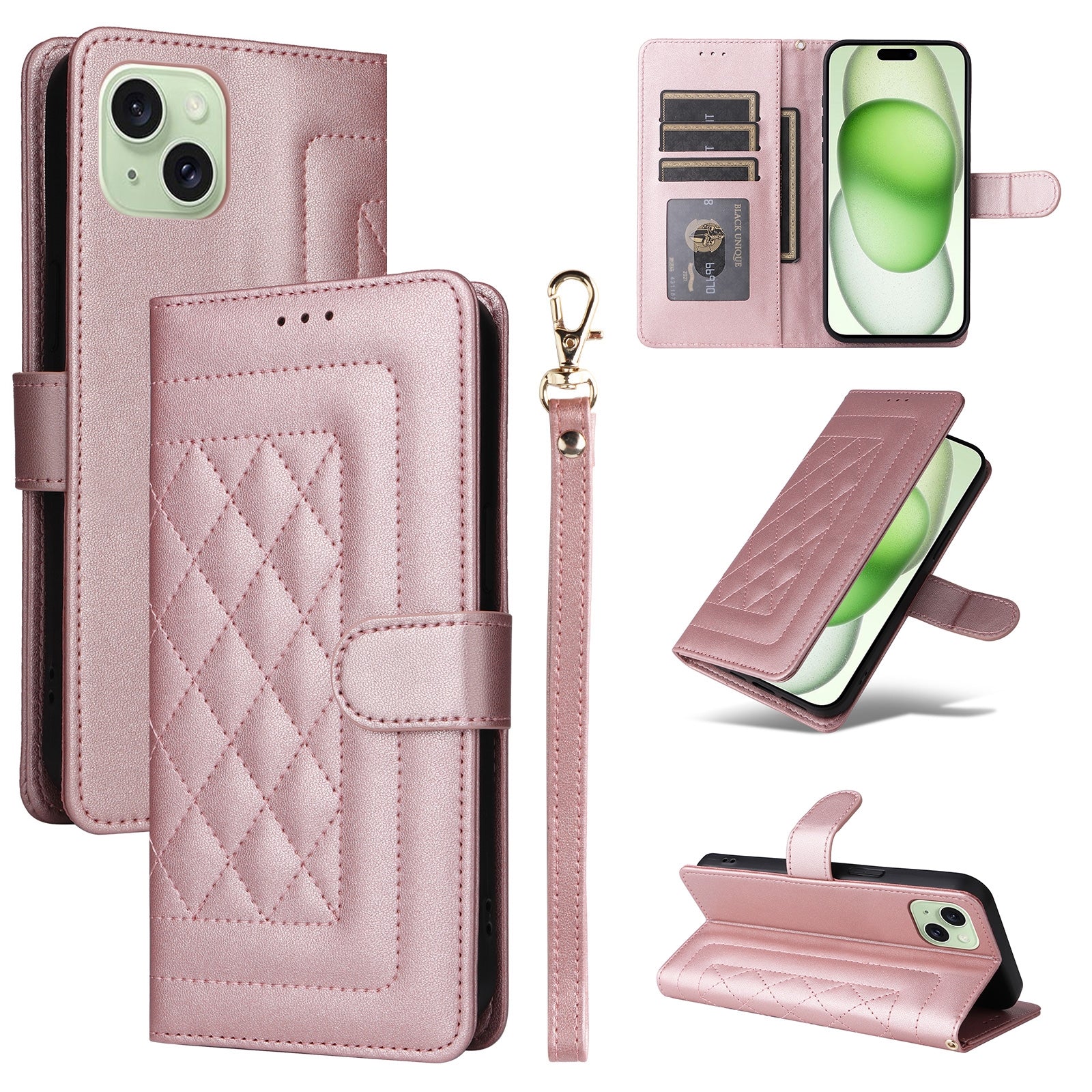 Introducing the ultimate companion for your iPhone 15 Plus - our Diamond Lattice Leather Flip Phone Case! Crafted from high-quality PU and TPU materials, this case is not only wear-resistant but also durable, ensuring long-lasting protection and style.