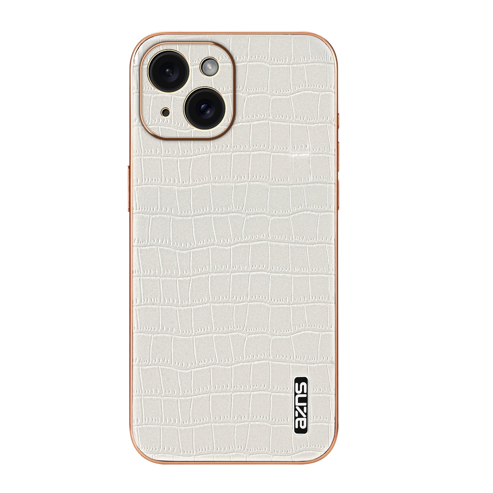 iPhone 15 Plus Luxury Case - Electroplated Frame, Crocodile Texture Leather, Full Coverage Protection, Anti-Fingerprint & Shockproof
