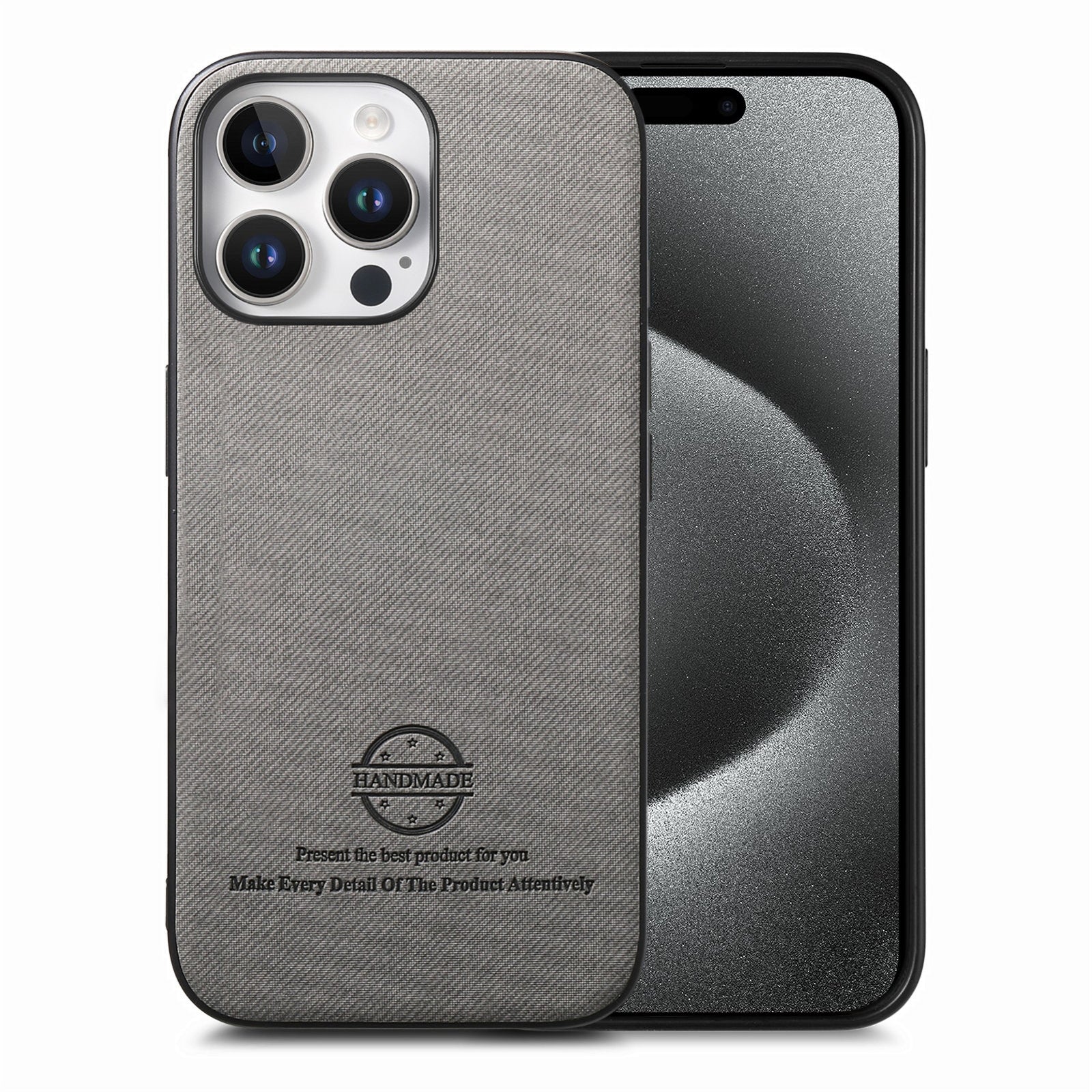 iPhone 15 Pro Case - Vegan Leather and Twill Fabric Skin with Anti-Scratch and Drop Protection Back Phone Case
