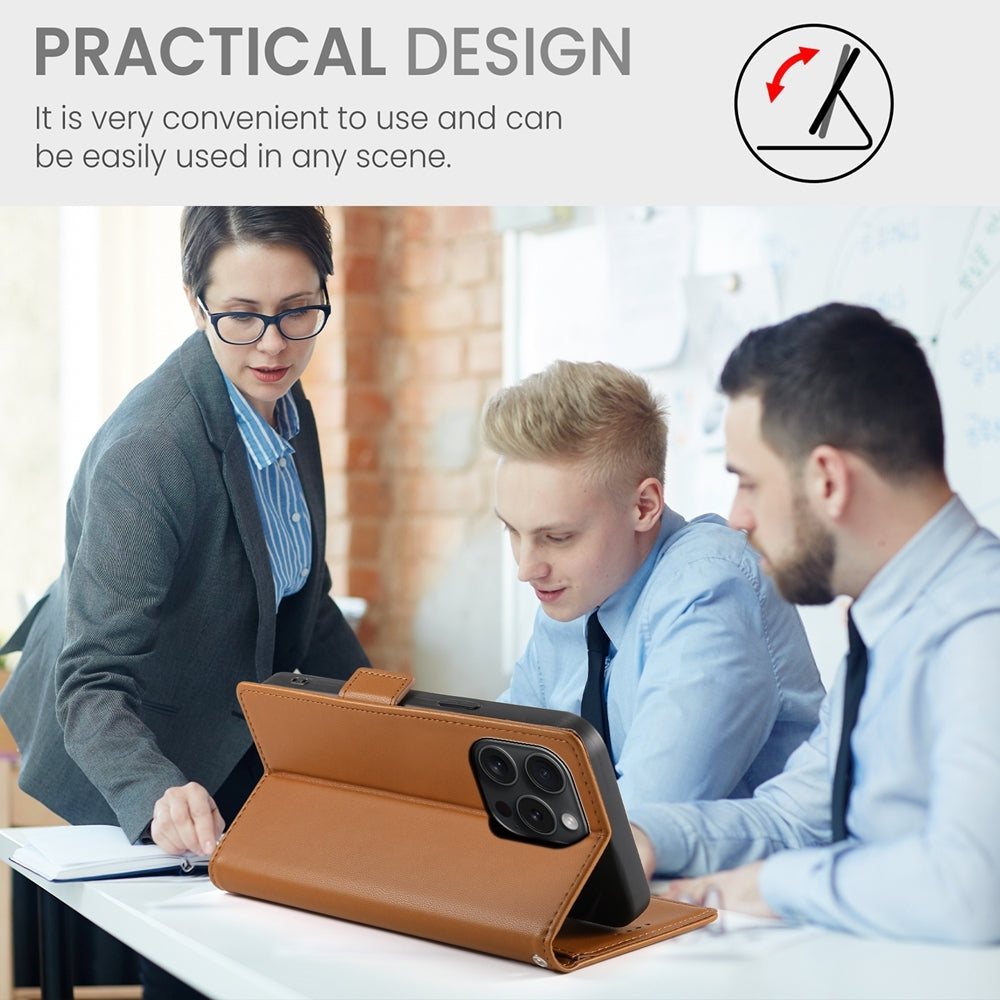 iPhone 15 Pro Magnetic Leather Wallet Case with Card Slots, Stand Function & Full Protection