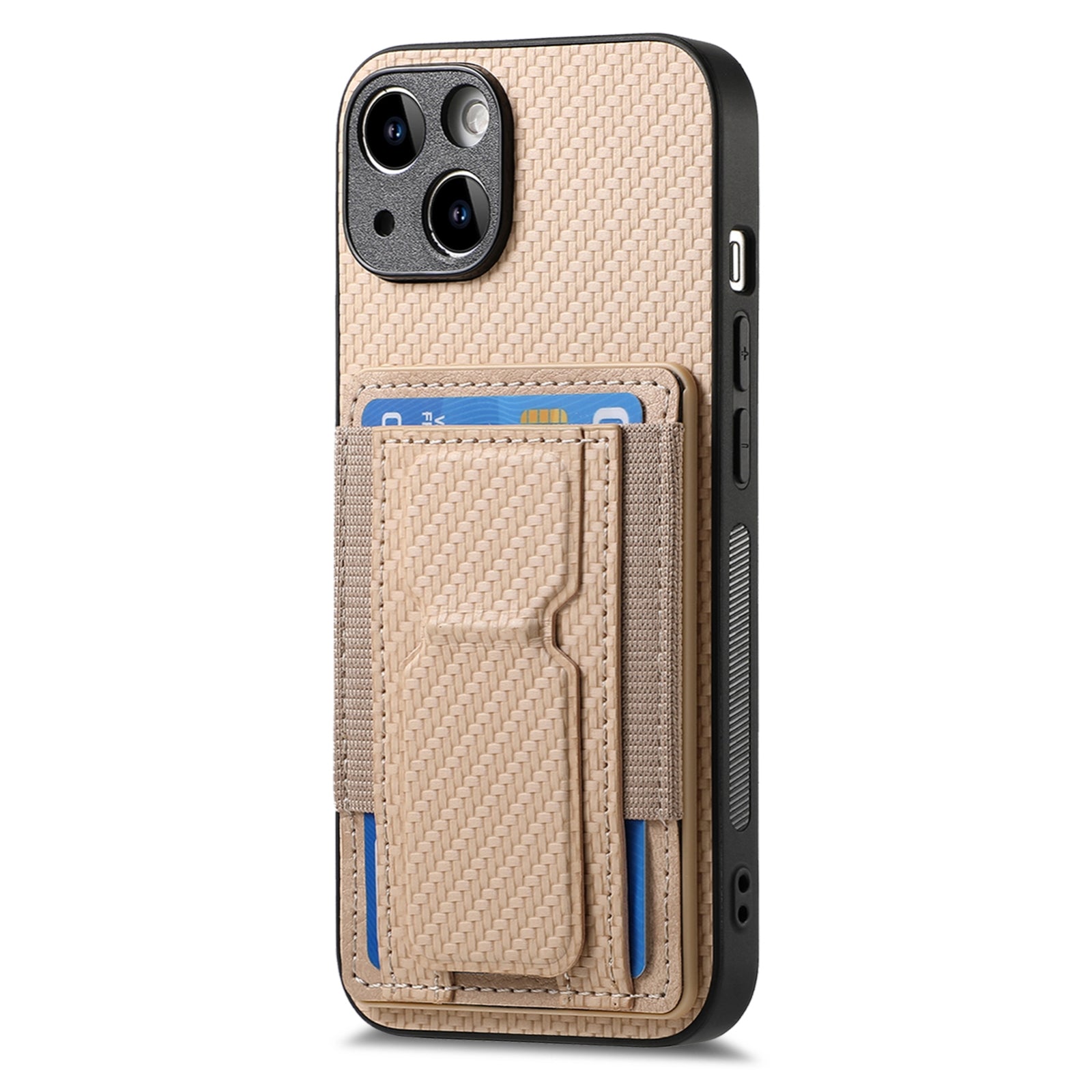 iPhone 15 Pro Max Carbon Fiber Fold Stand Elastic Card Bag Phone Case with Multi-Functional Wallet