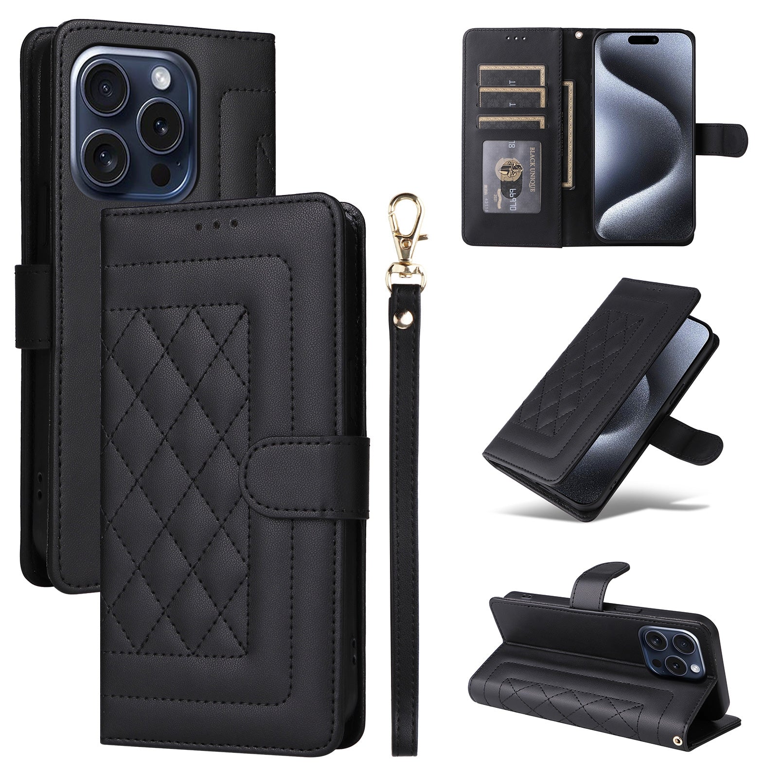 iPhone 15 Pro Max Diamond Lattice Leather Flip Phone Case - Durable and Convenient Holder with Precision Cutouts