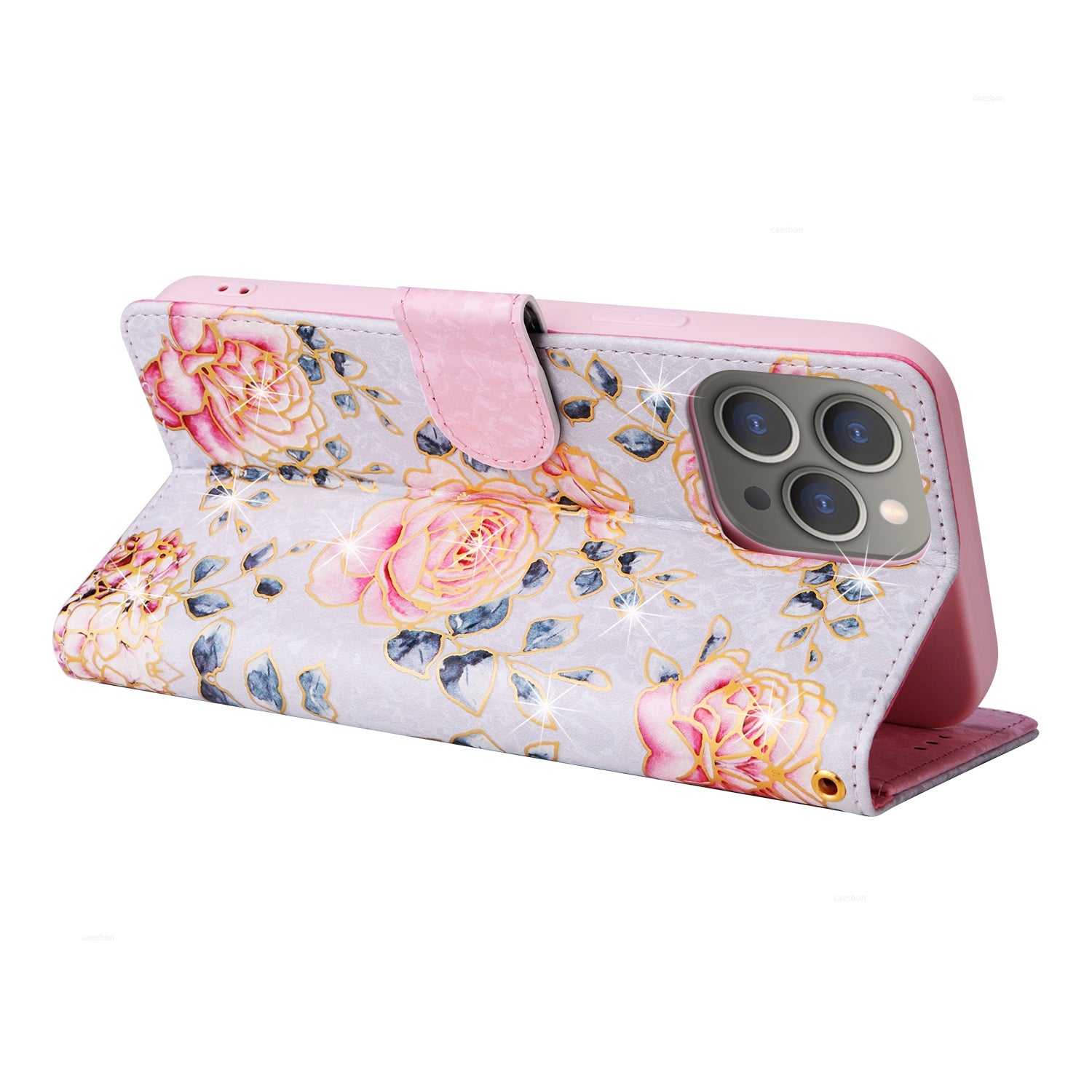 iPhone 15 Pro Max Luxury Bronzing Leather Case - Floral RFID Wallet Cover with Stand & Card Slots