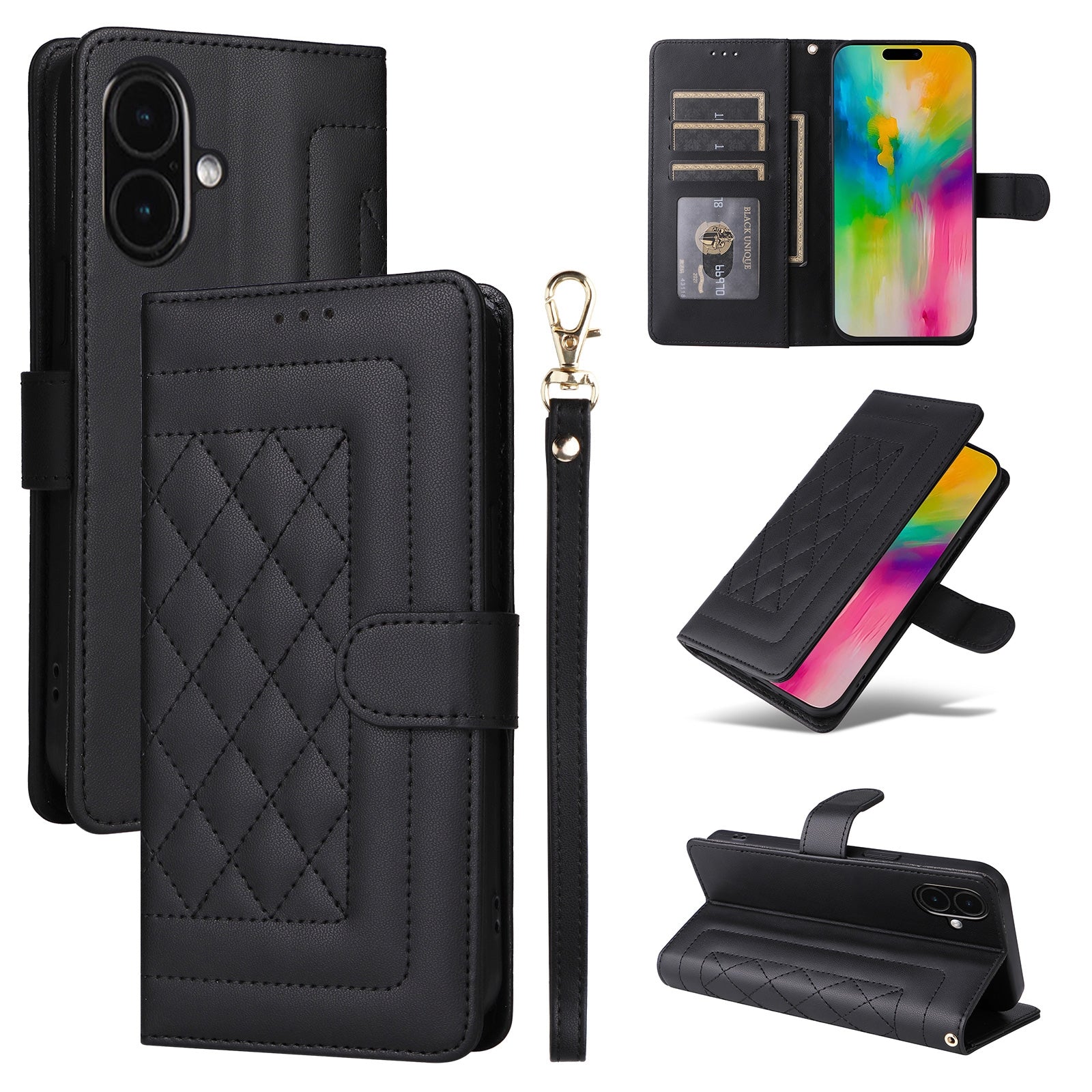 iPhone 16 Diamond Lattice Leather Flip Phone Case - Durable and Convenient Holder with Precision Cutouts