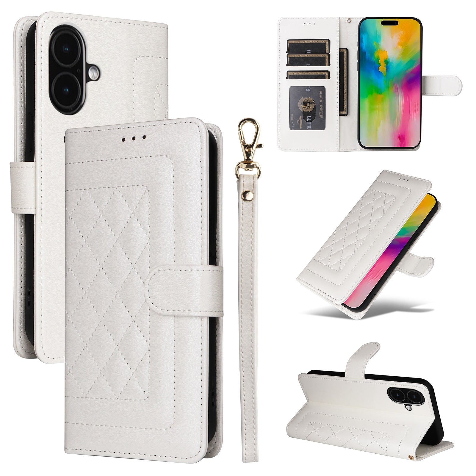iPhone 16 Plus Diamond Lattice Leather Flip Phone Case - Durable and Convenient Holder with Precision Cutouts