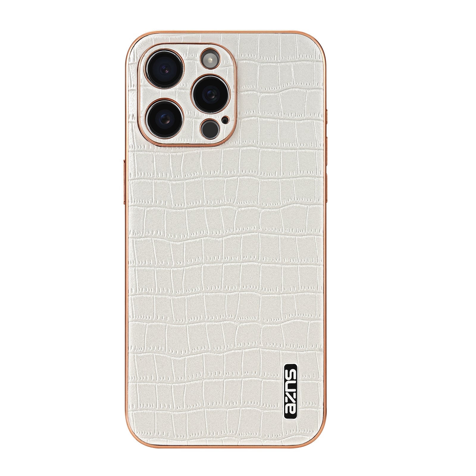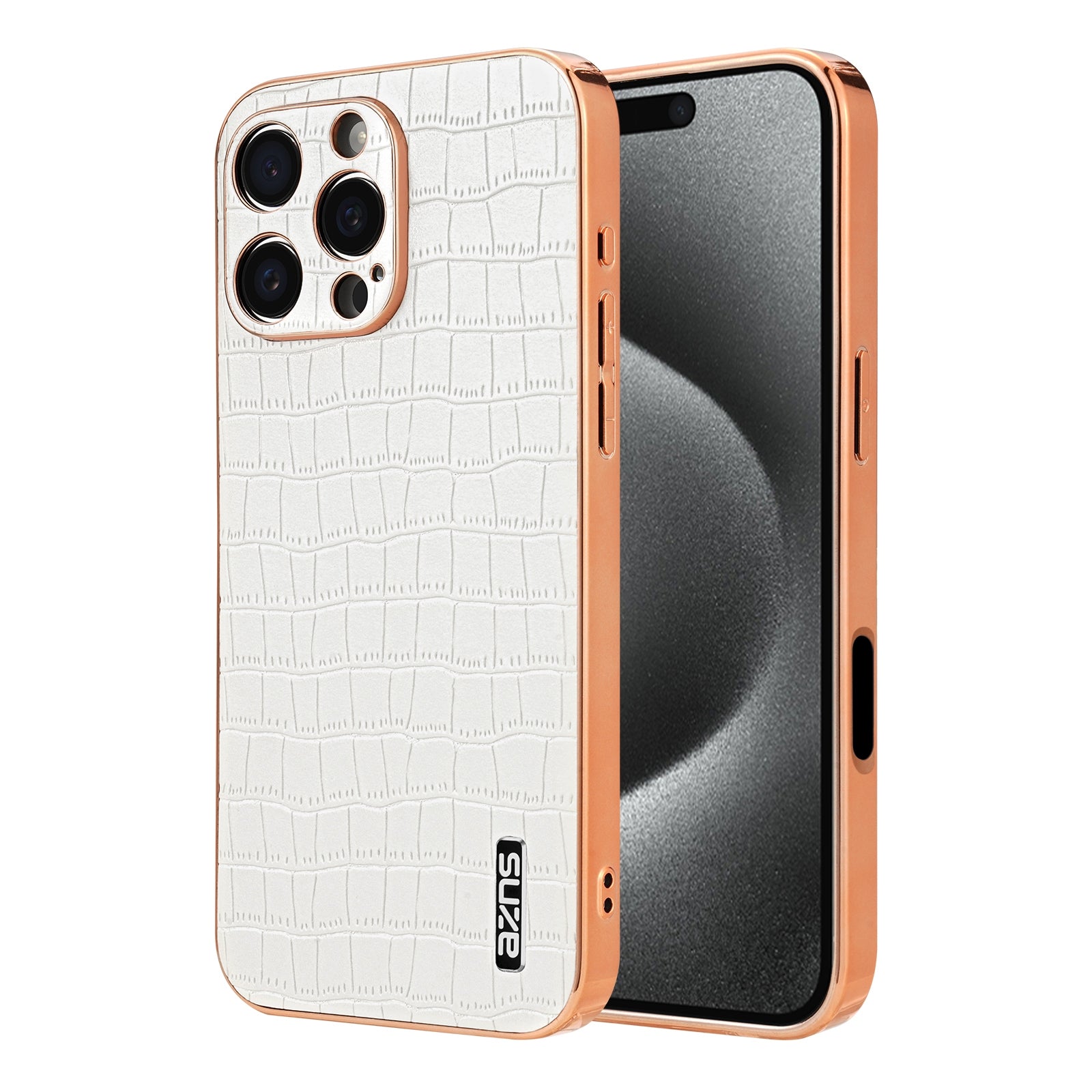 iPhone 16 Pro Luxury Case - Electroplated Frame, Crocodile Texture Leather, Full Coverage Protection, Anti-Fingerprint & Shockproof