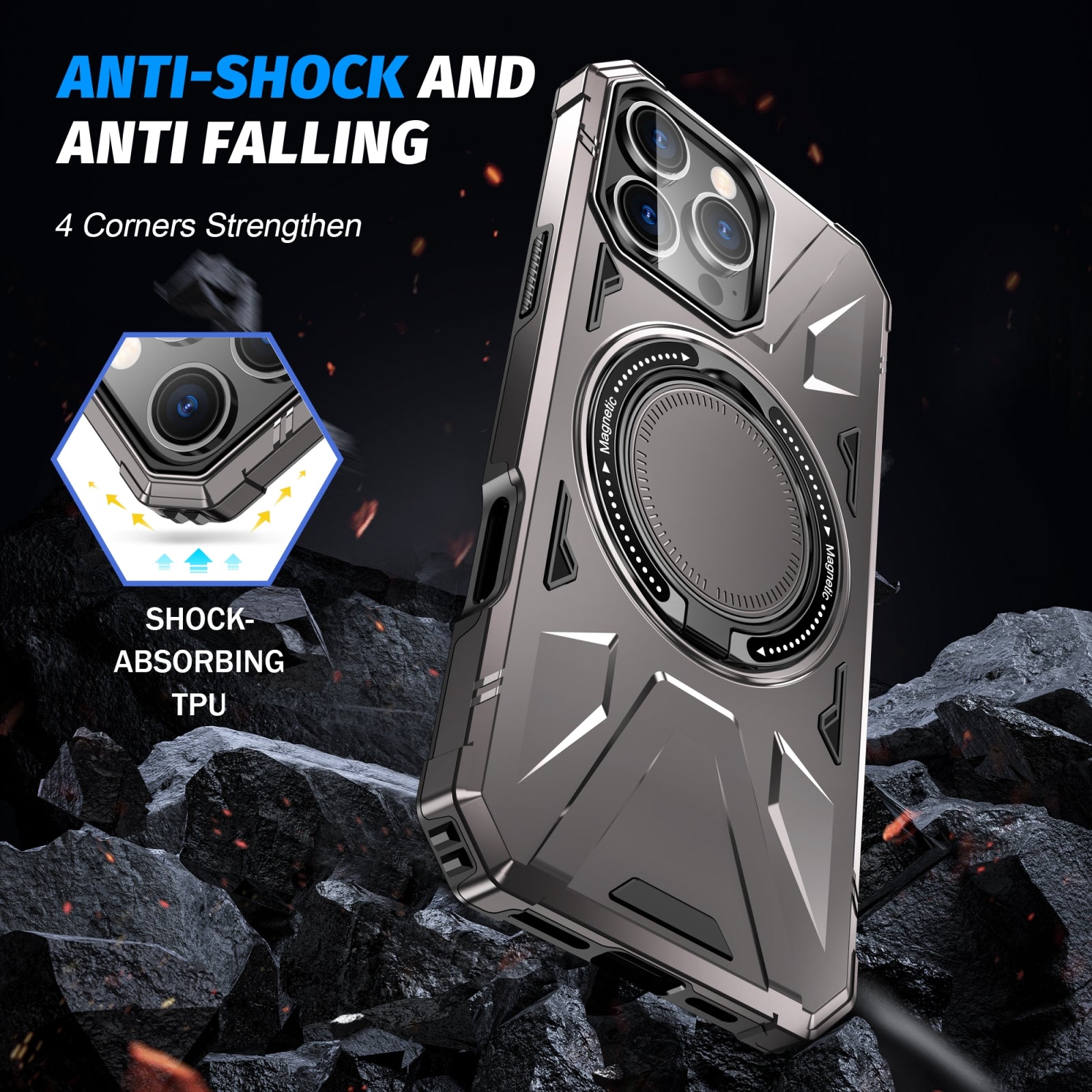 iPhone 16 Pro MagSafe Shockproof Case - Magnetic Ring Holder, Rugged Protection, Wireless Charging Compatible