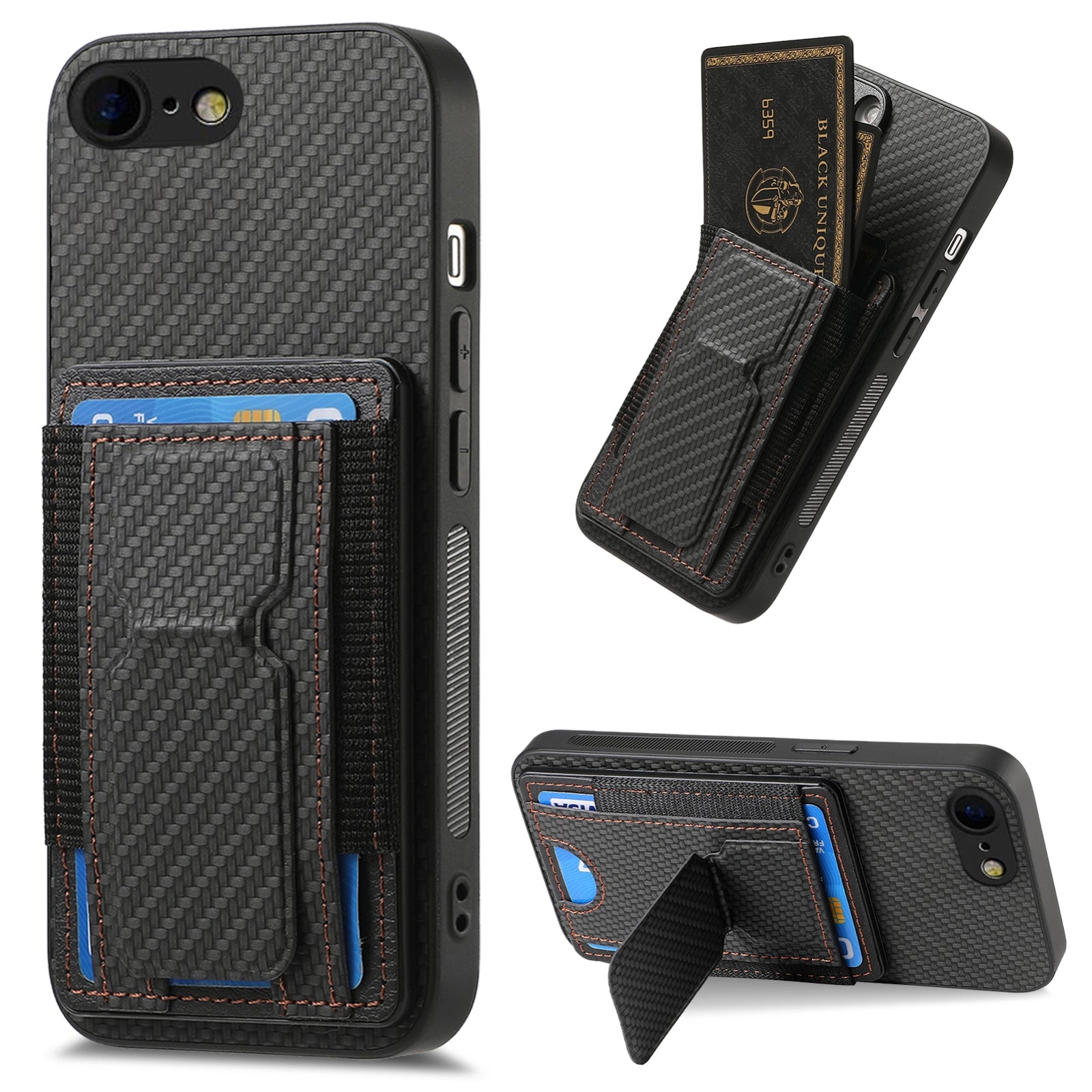 iPhone 7 / 8 / SE 2022 Carbon Fiber Fold Stand Elastic Card Bag Phone Case with Multi-Functional Wallet