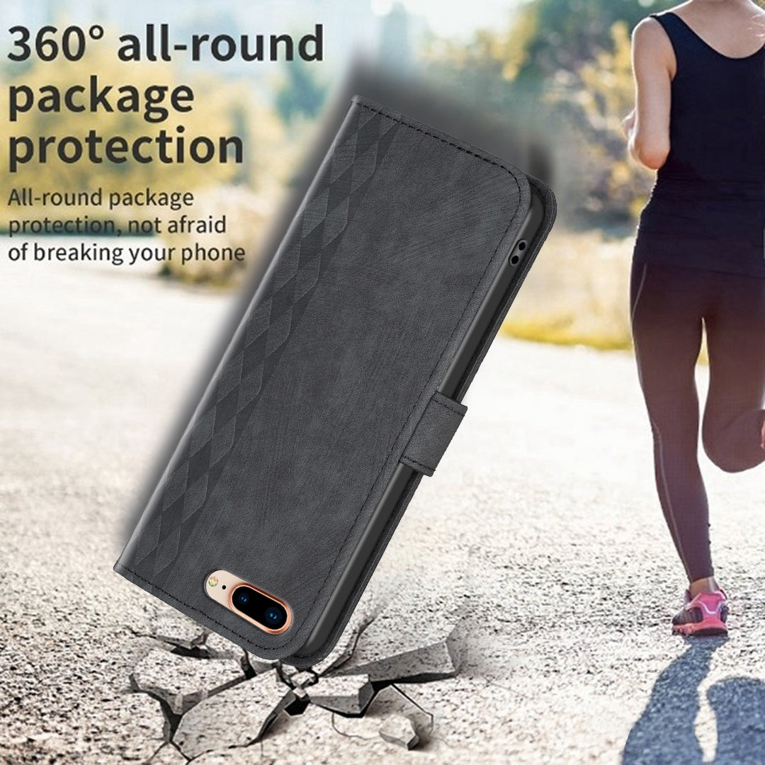 iPhone 7 Plus Case - Embossed Plaid Leather Wallet Cover with Card Slots, Kickstand, and 360 degree Protection