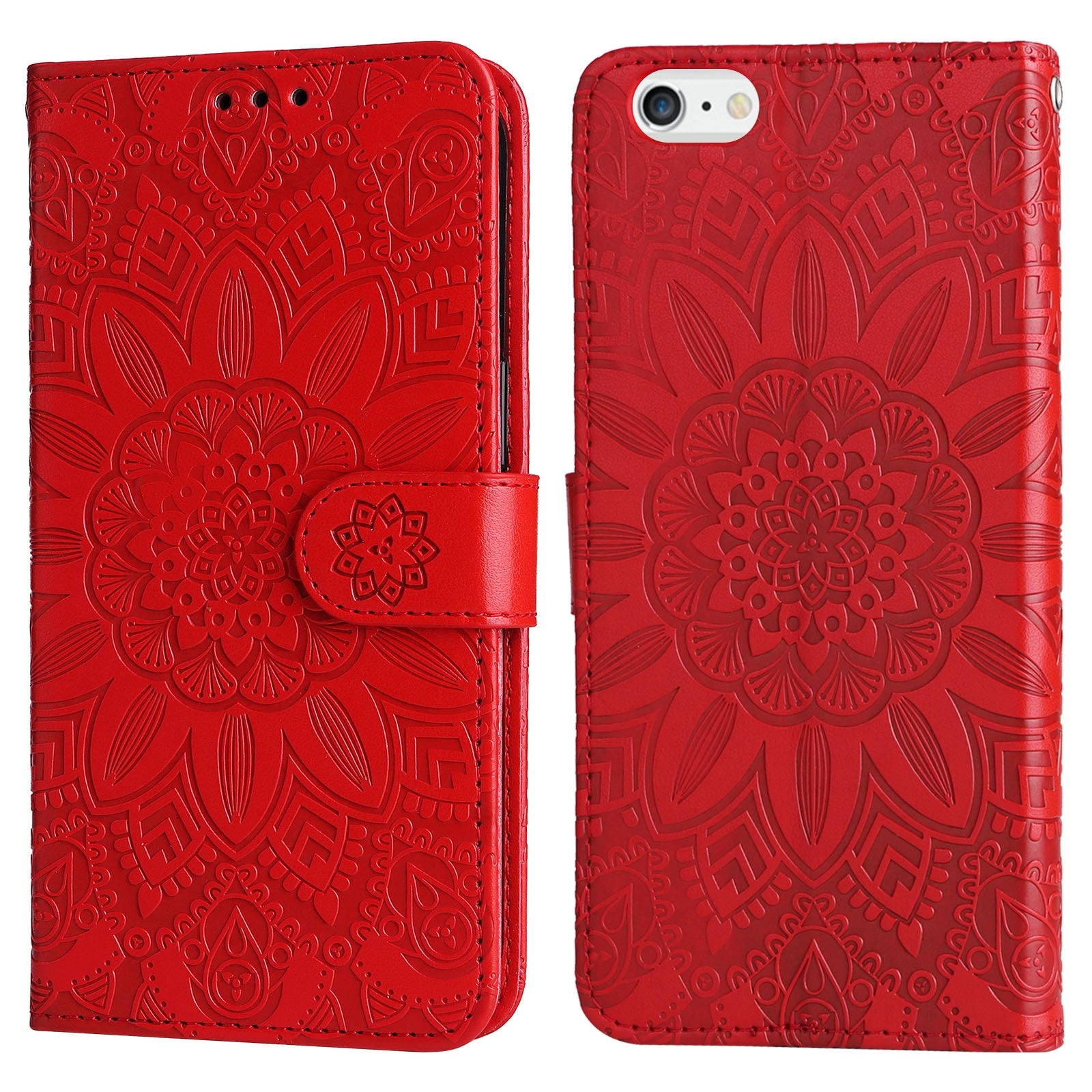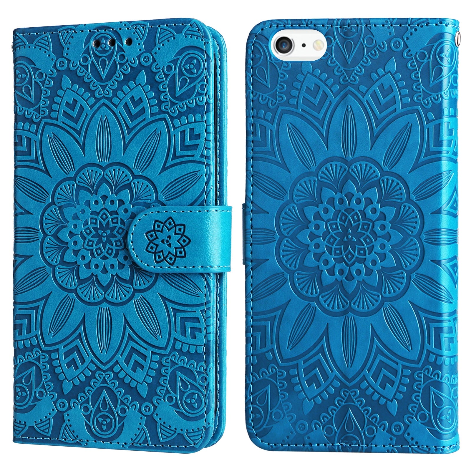 iPhone SE 2022 Sunflower Embossed Leather Wallet Phone Case with Kickstand and Card Holder