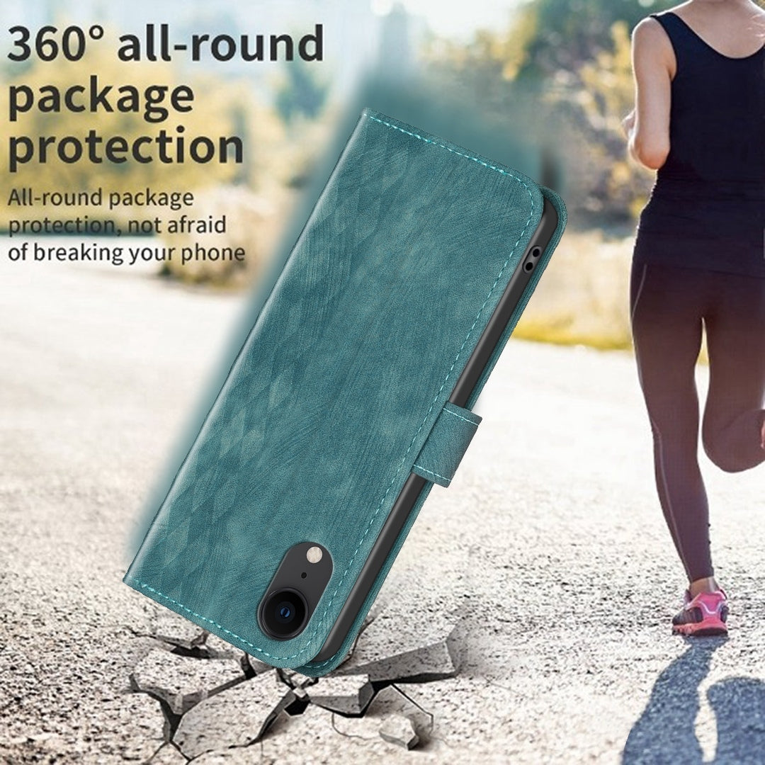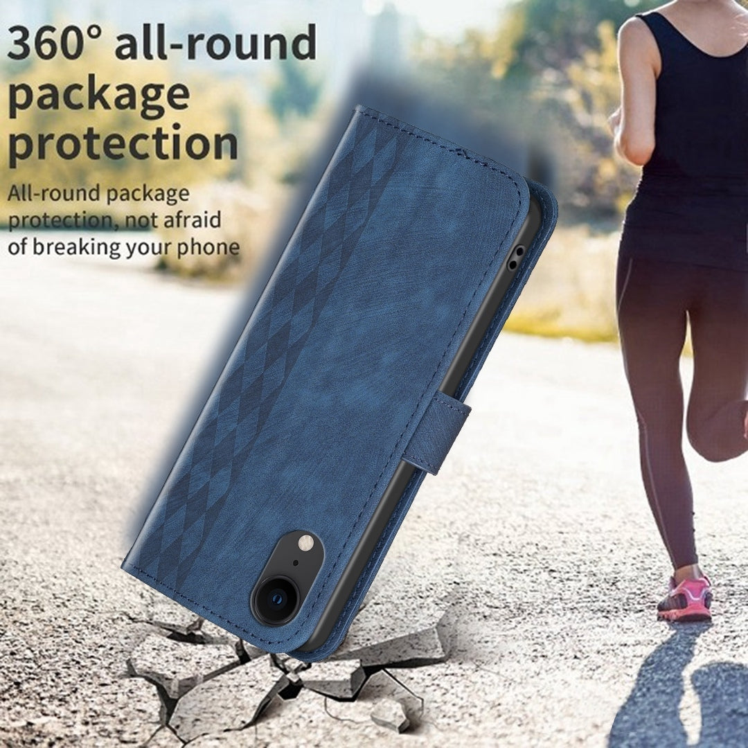 iPhone XR Case - Embossed Plaid Leather Wallet Cover with Card Slots, Kickstand, and 360 degree Protection