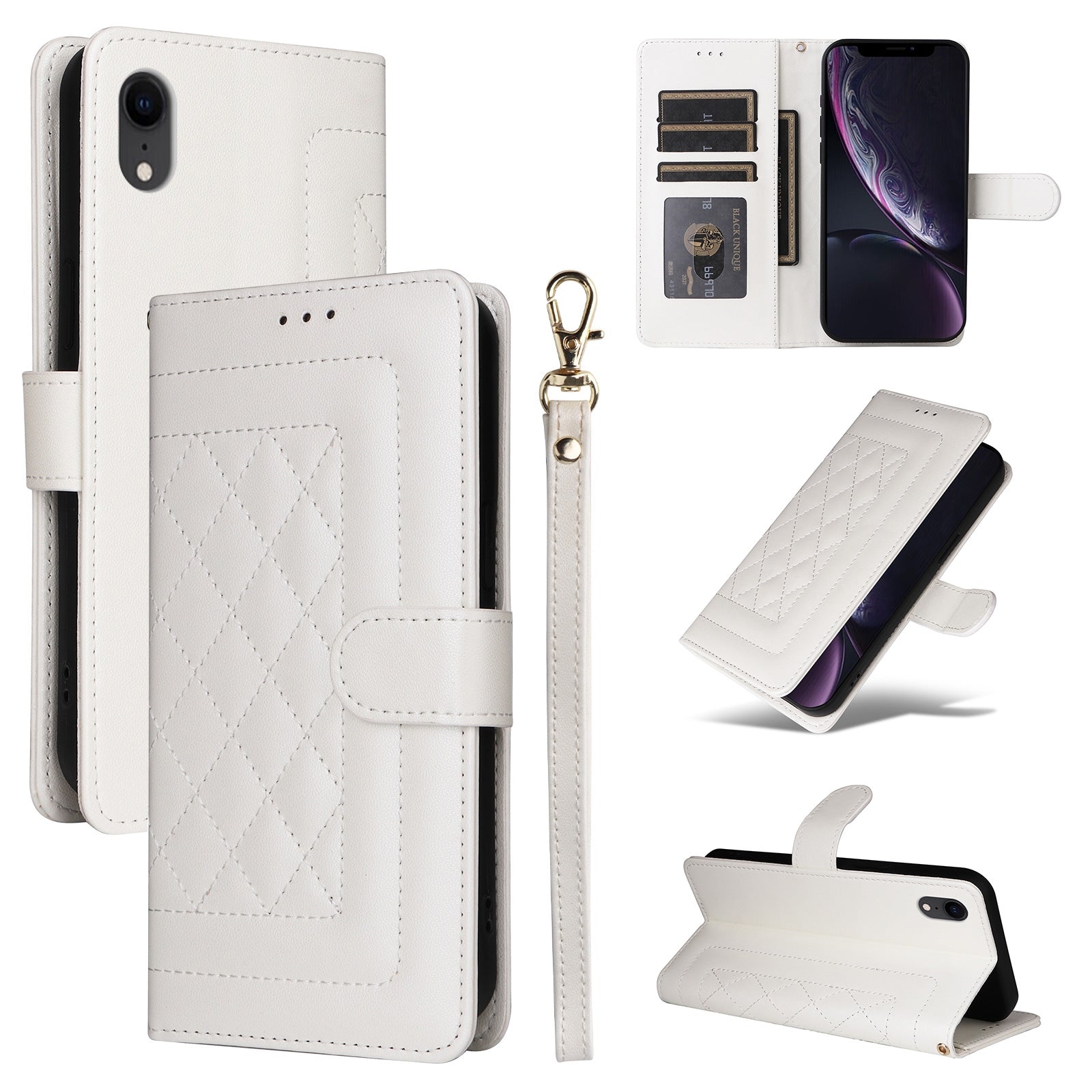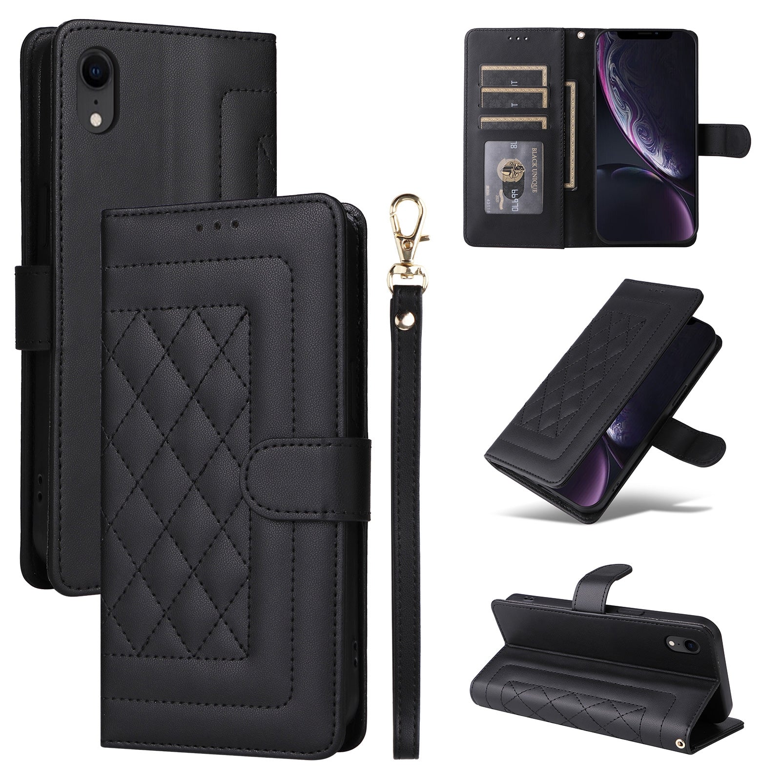 iPhone XR Diamond Lattice Leather Flip Phone Case - Durable and Convenient Holder with Precision Cutouts