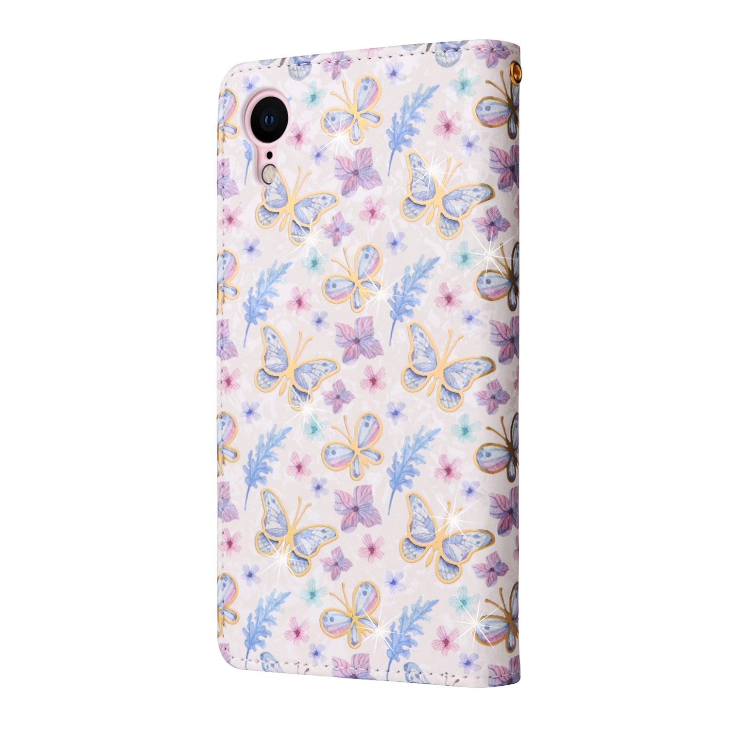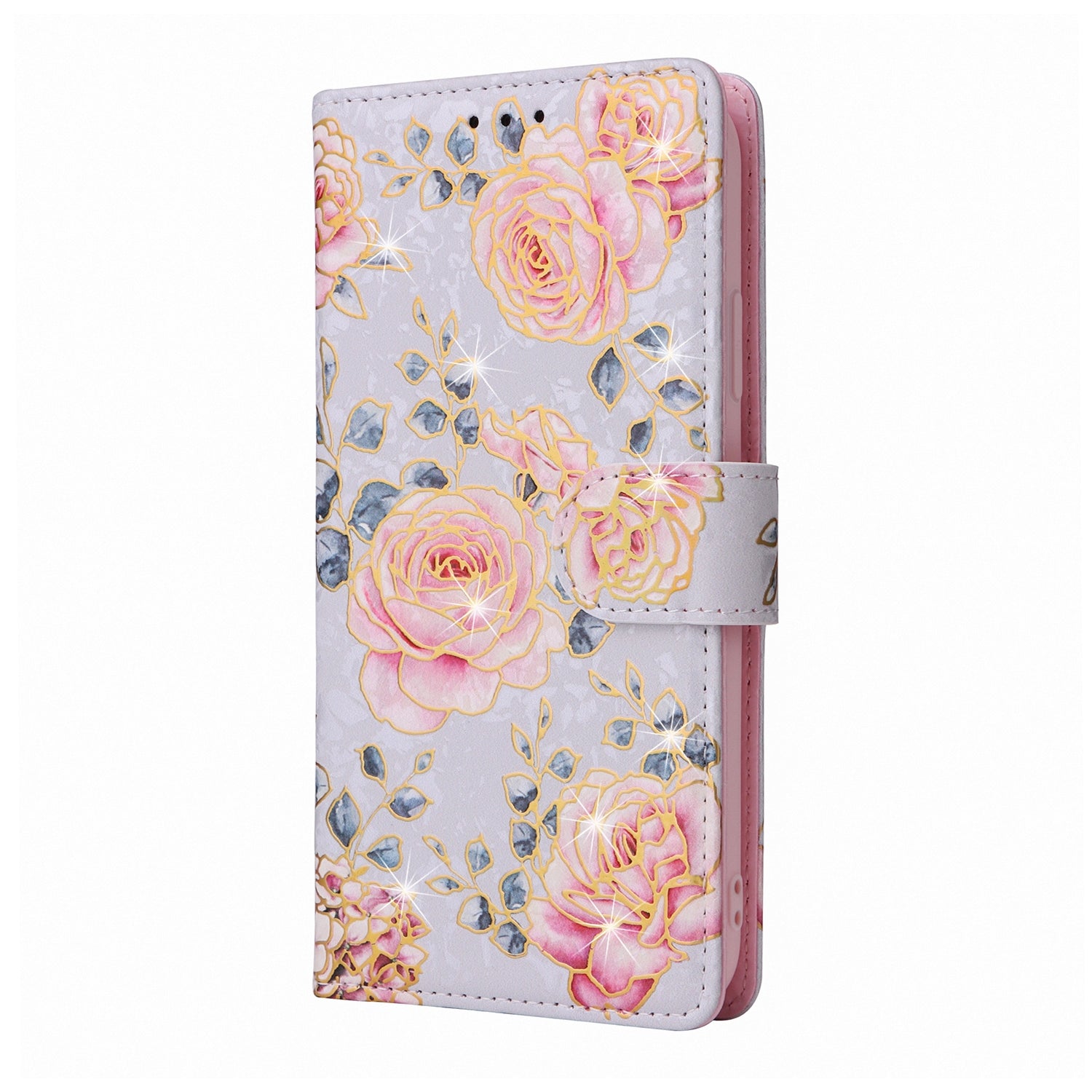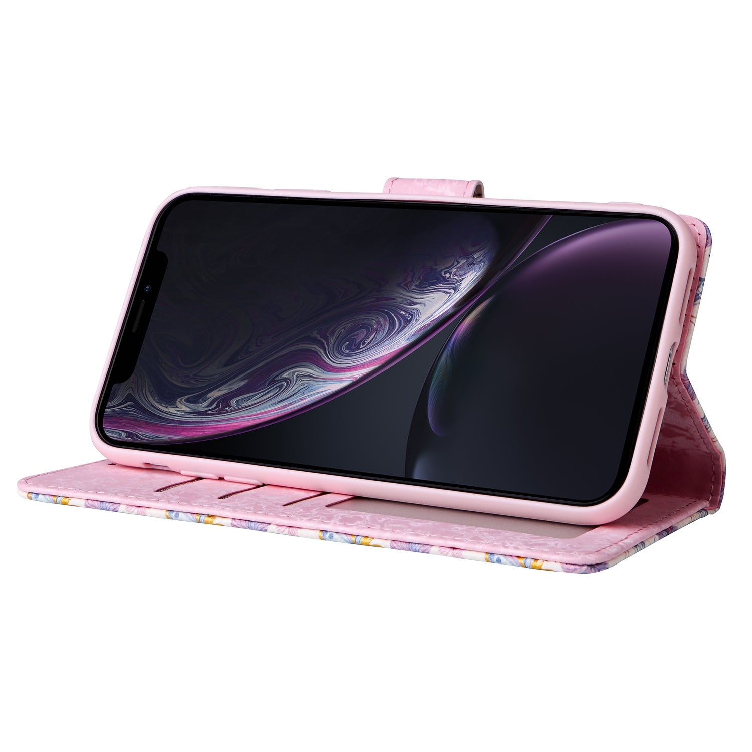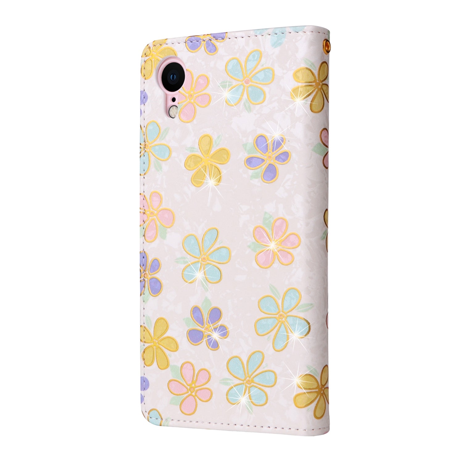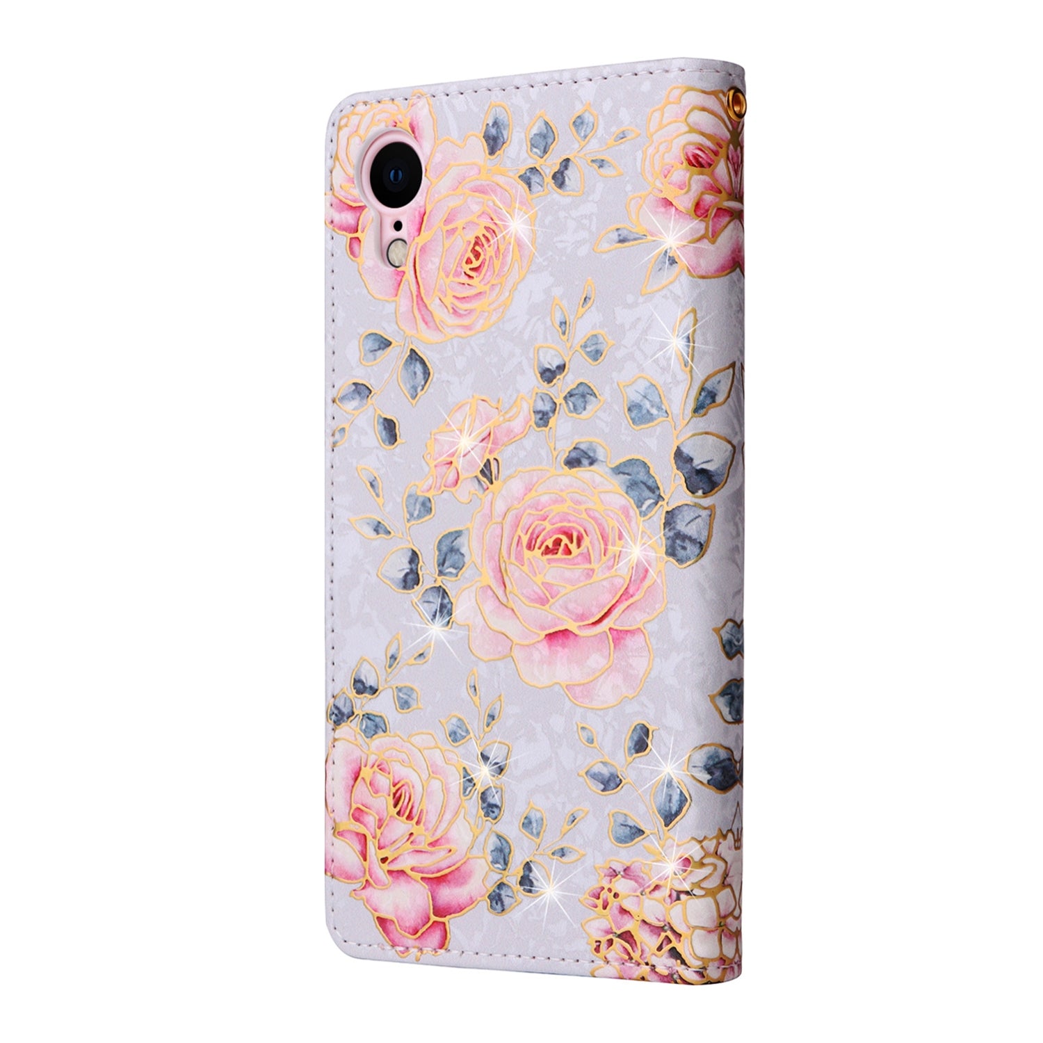 iPhone XR Luxury Bronzing Leather Case - Floral RFID Wallet Cover with Stand & Card Slots