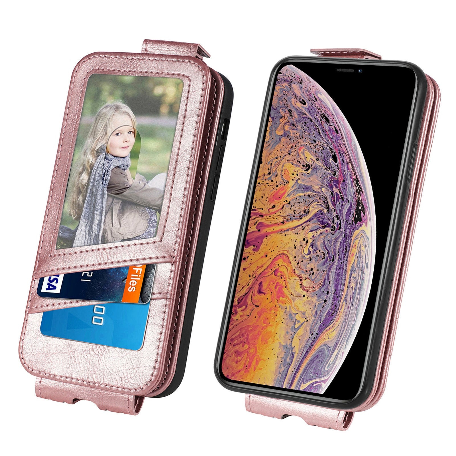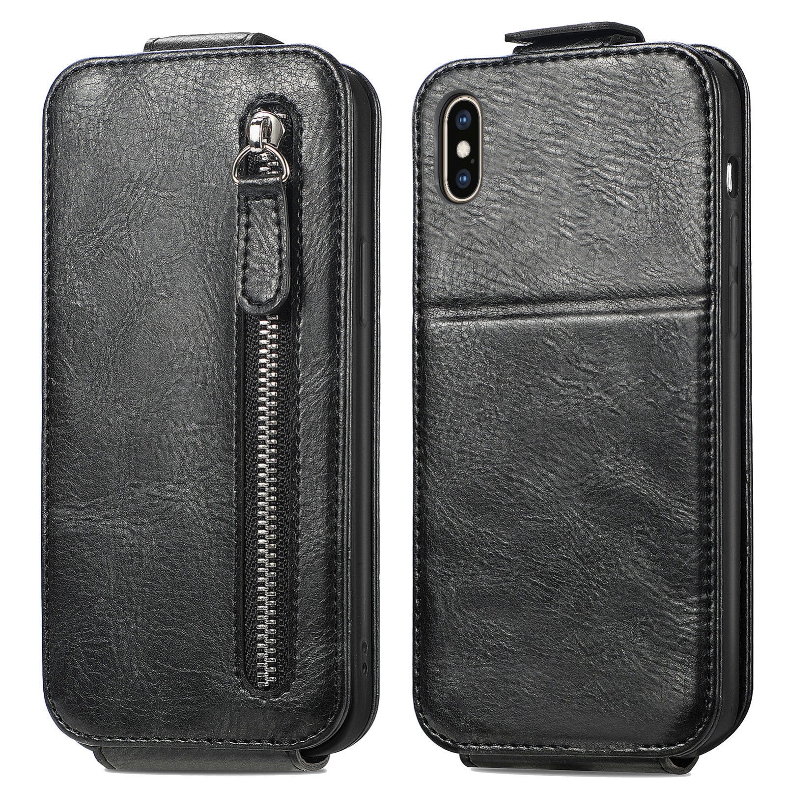 iPhone XS Max Zipper Wallet Case - Vertical Flip Leather Phone Cover with Multiple Card Slots and Stand