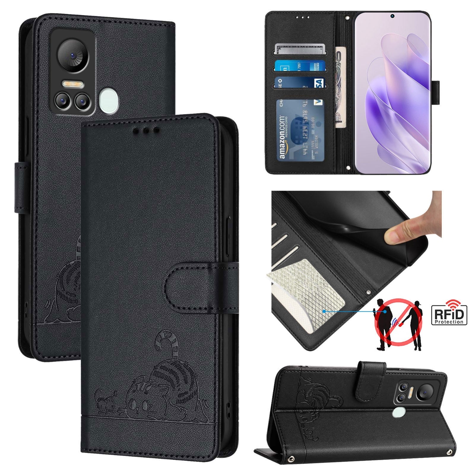 itel S18 Cat and Rat Embossed Pattern, RFID Leather Phone Case with Lanyard, Kickstand, and Wallet Features