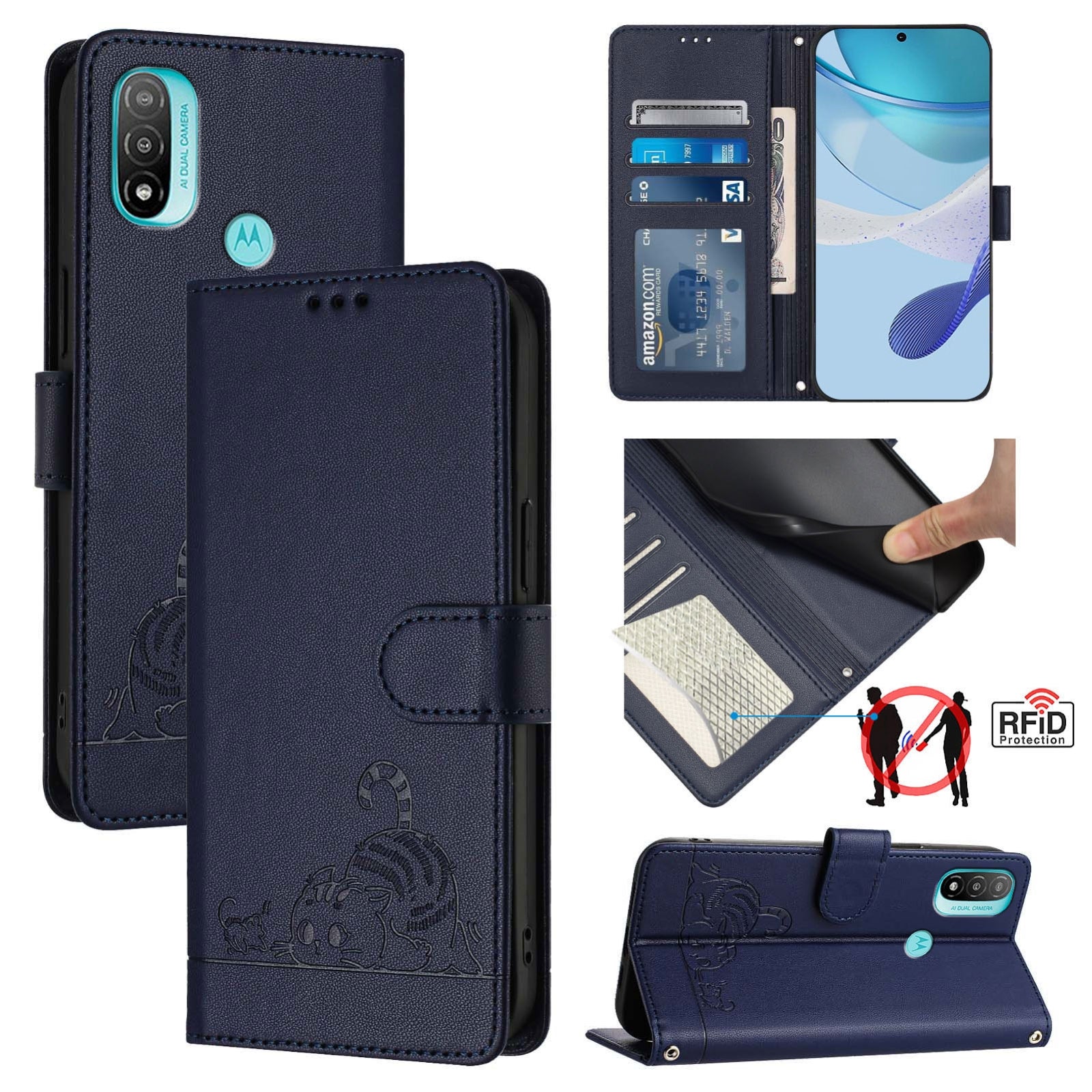 Motorola Moto E20 Cat and Rat Embossed Pattern, RFID Leather Phone Case with Lanyard, Kickstand, and Wallet Features