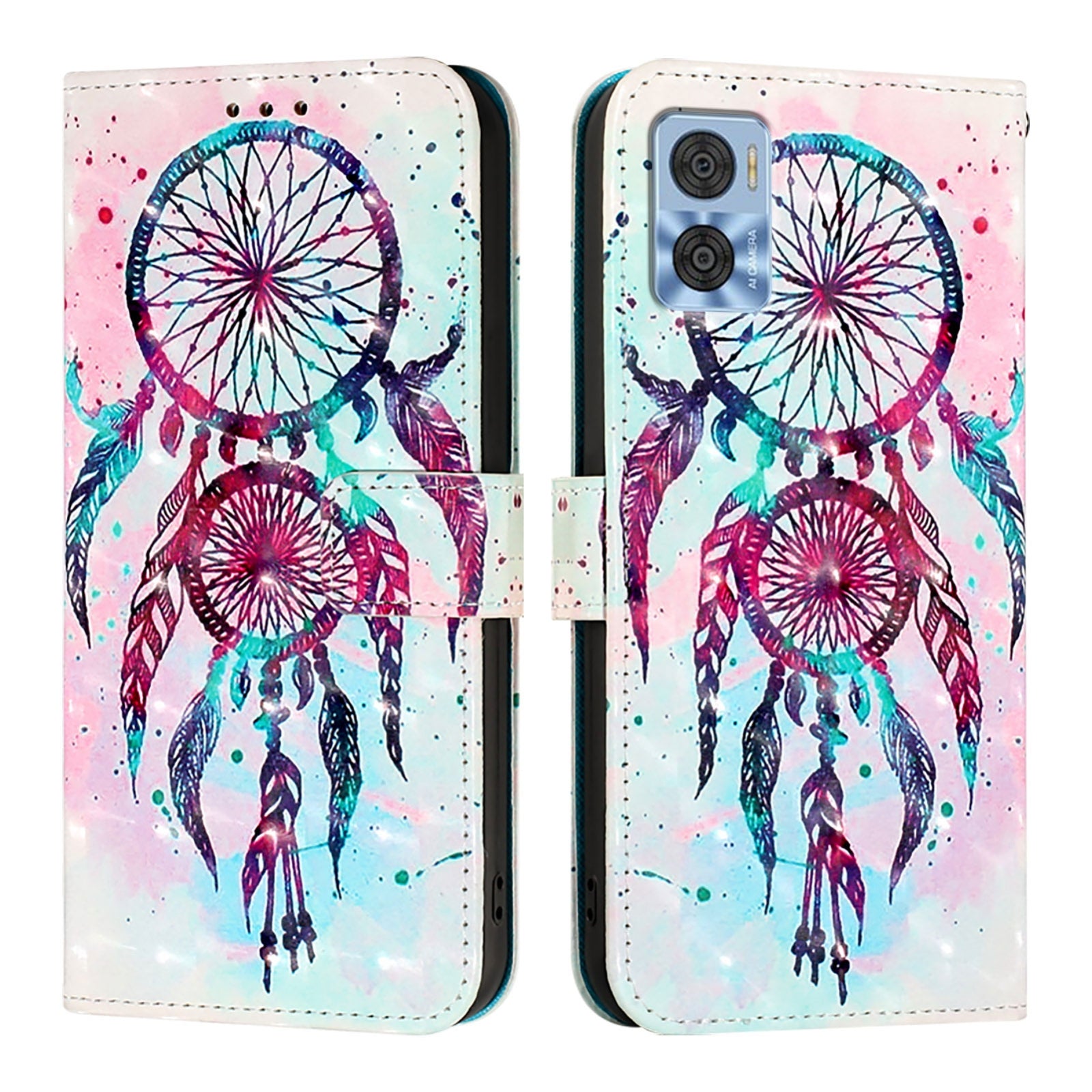 Give your Motorola Moto E22 a stylish upgrade with this beautifully designed leather flip phone case featuring eye-catching 3D artwork. Crafted from premium-quality PU leather combined with a robust TPU interior, this case ensures your device stays protected against everyday scratches, dirt, wear, and tear.
