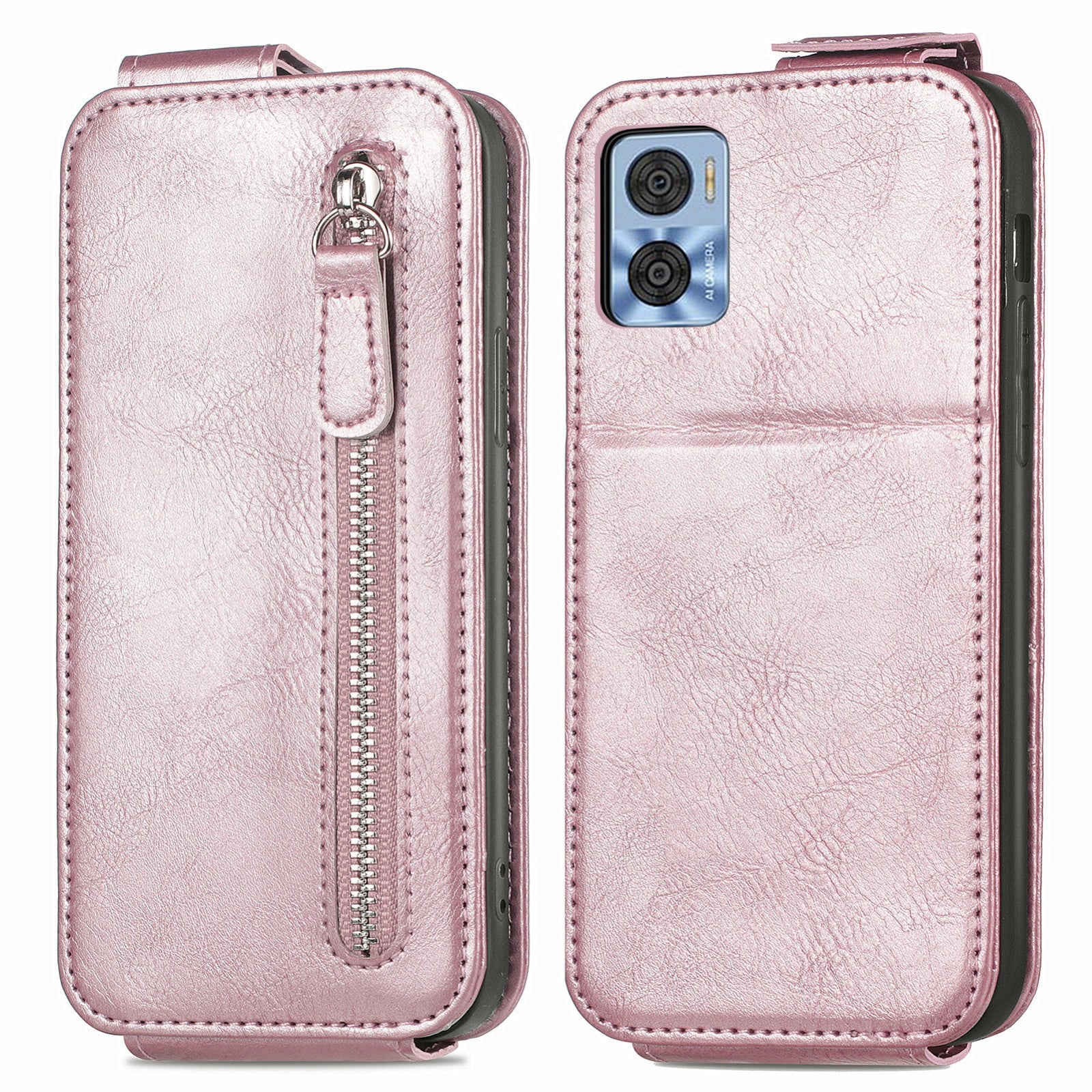 Motorola Moto E22 Zipper Wallet Case - Vertical Flip Leather Phone Cover with Multiple Card Slots and Stand