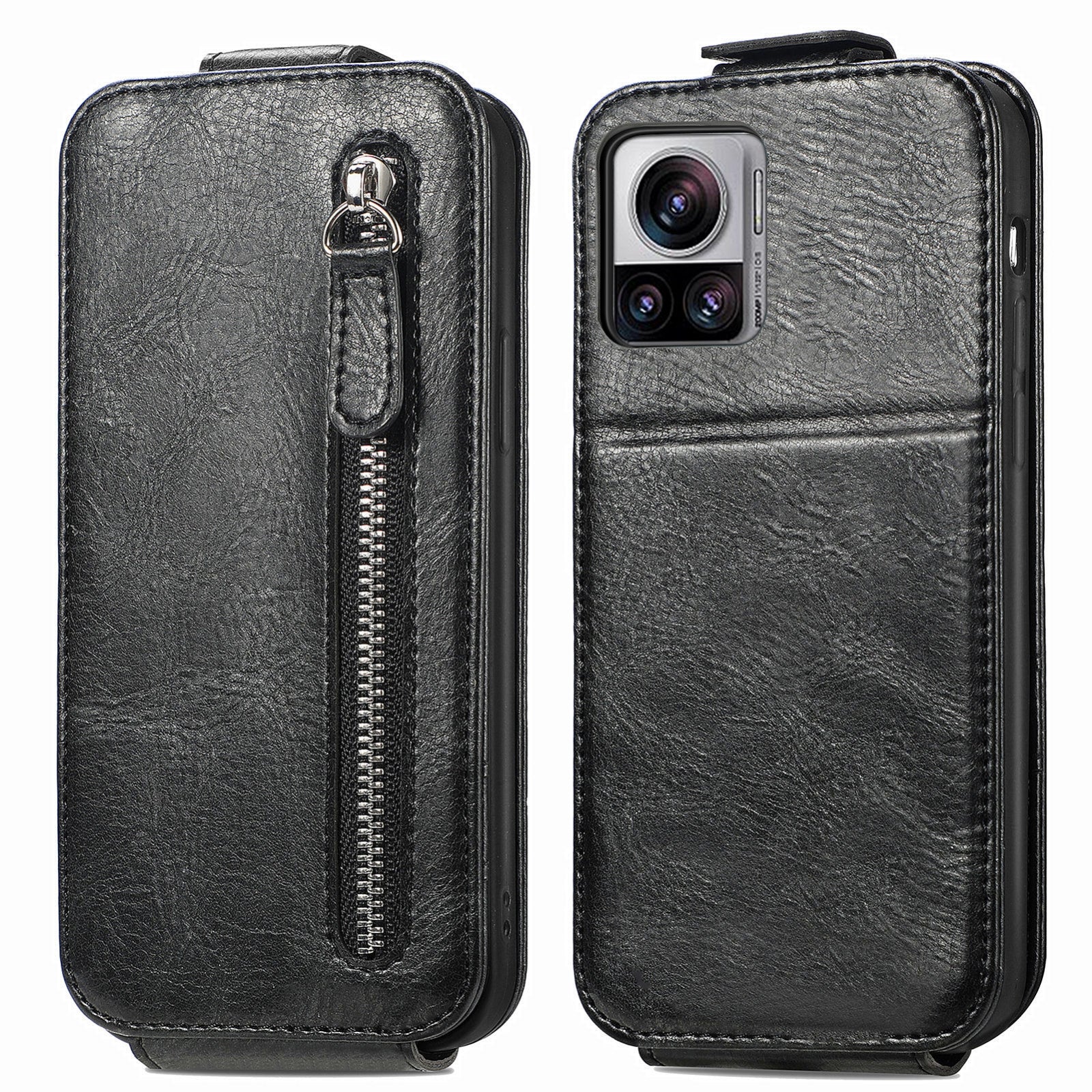 Motorola Moto Edge 30 Ultra Zipper Wallet Case - Vertical Flip Leather Phone Cover with Multiple Card Slots and Stand