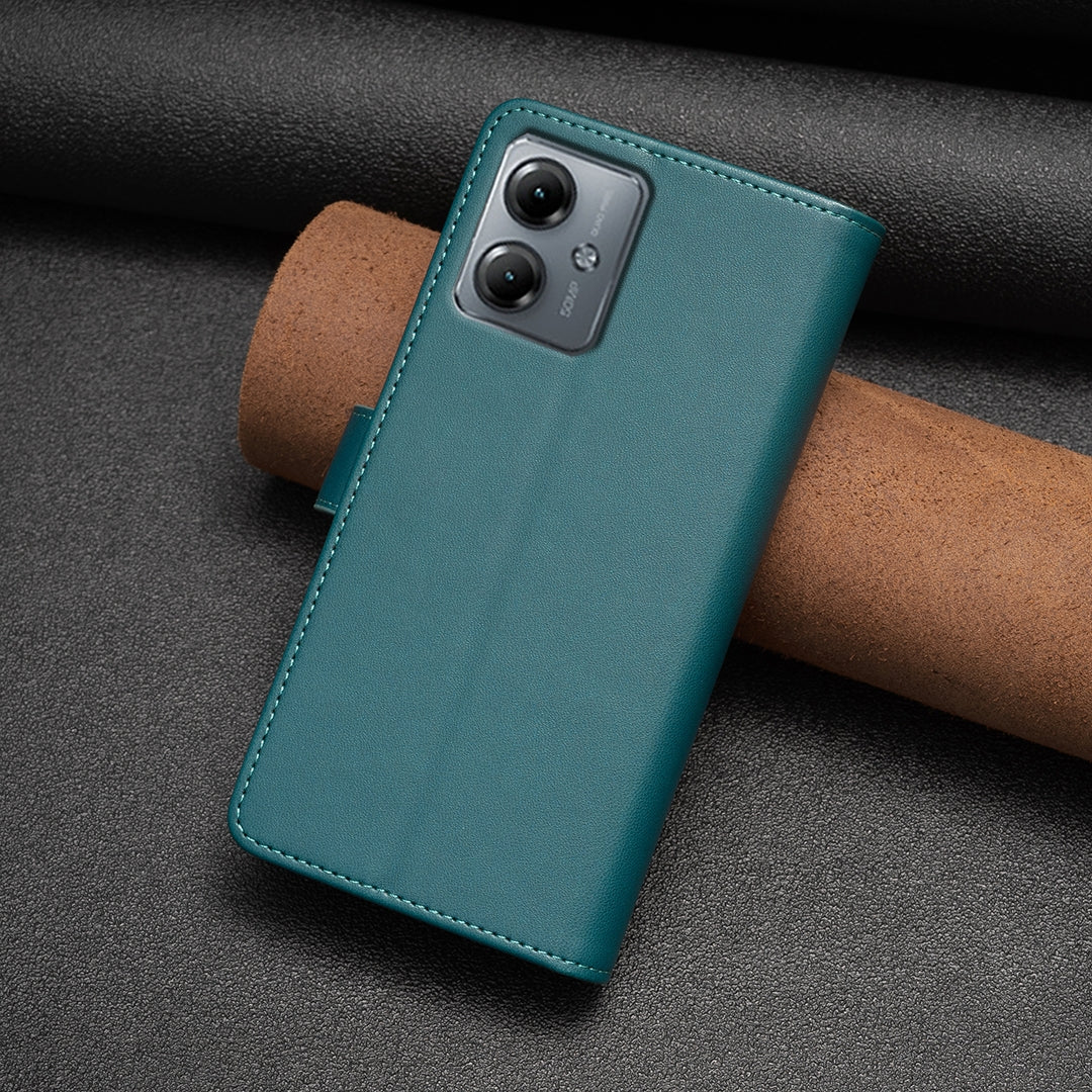 Durable & Protective: Crafted from robust PU and TPU materials, this Motorola Moto G14 4G leather flip case offers long-lasting wear resistance and comprehensive protection against scratches, dirt, and everyday wear and tear.