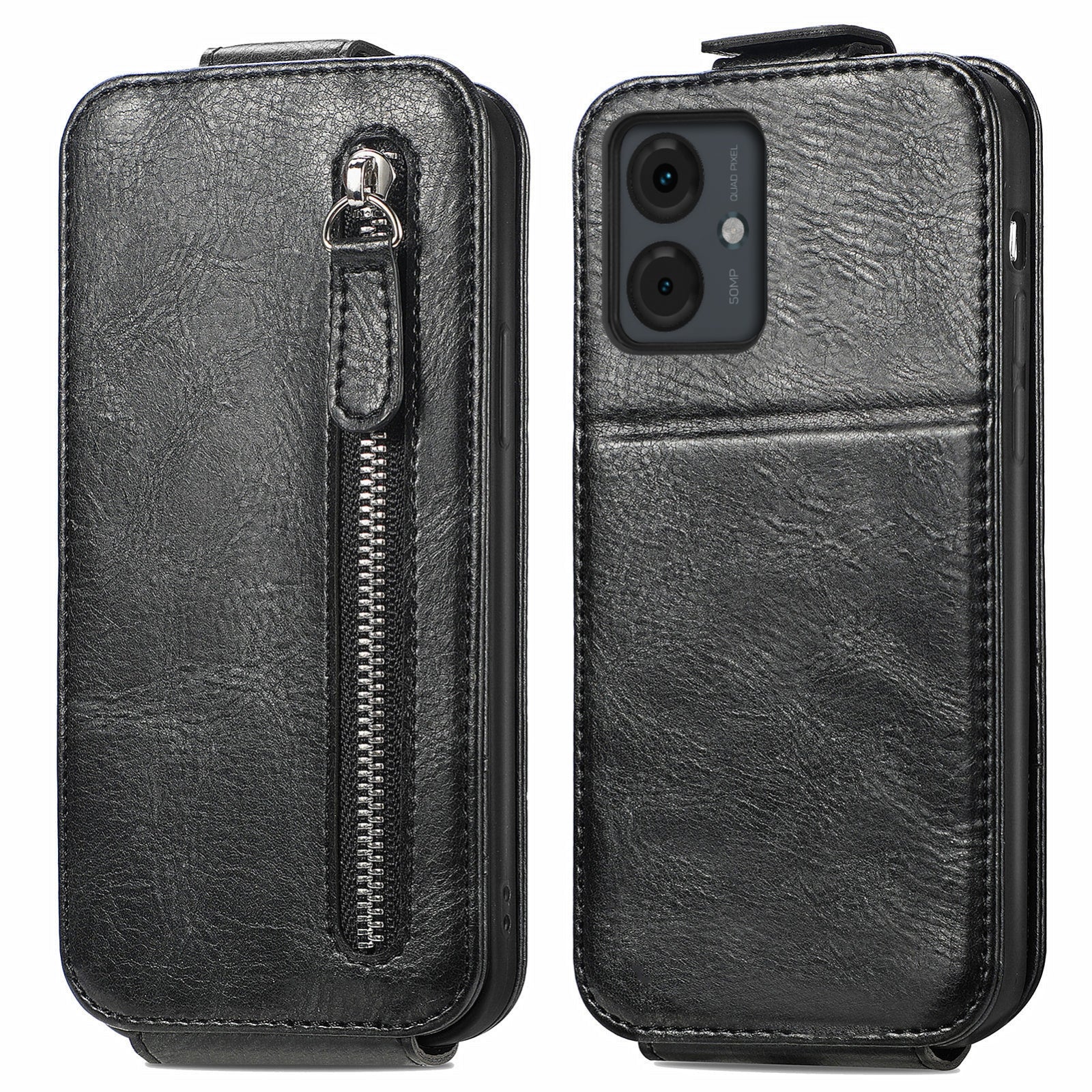 Motorola Moto G14 4G Zipper Wallet Case - Vertical Flip Leather Phone Cover with Multiple Card Slots and Stand