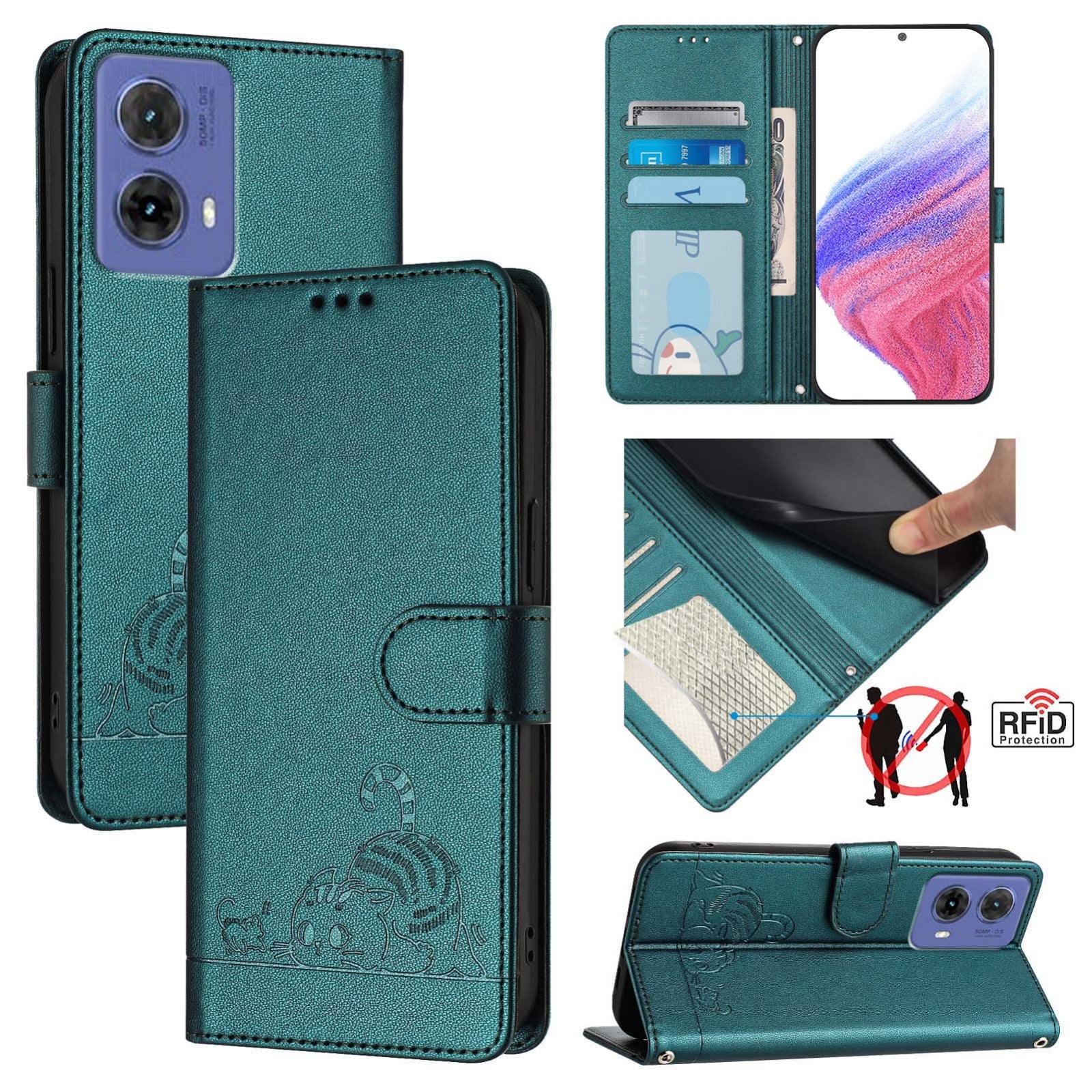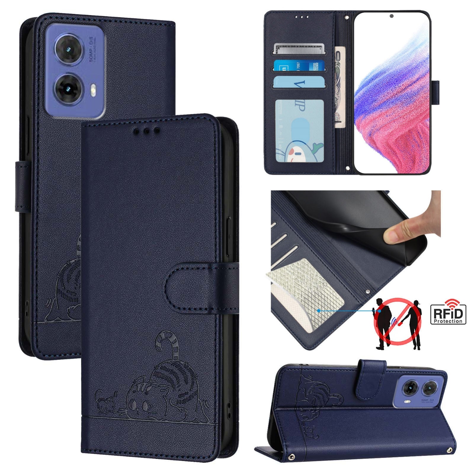 Motorola Moto G85 Cat and Rat Embossed Pattern, RFID Leather Phone Case with Lanyard, Kickstand, and Wallet Features