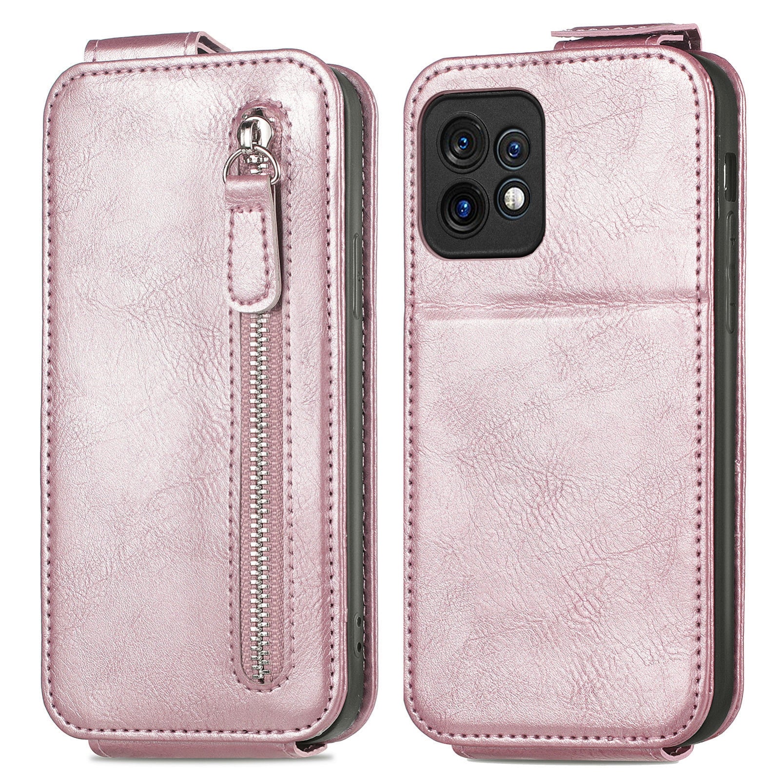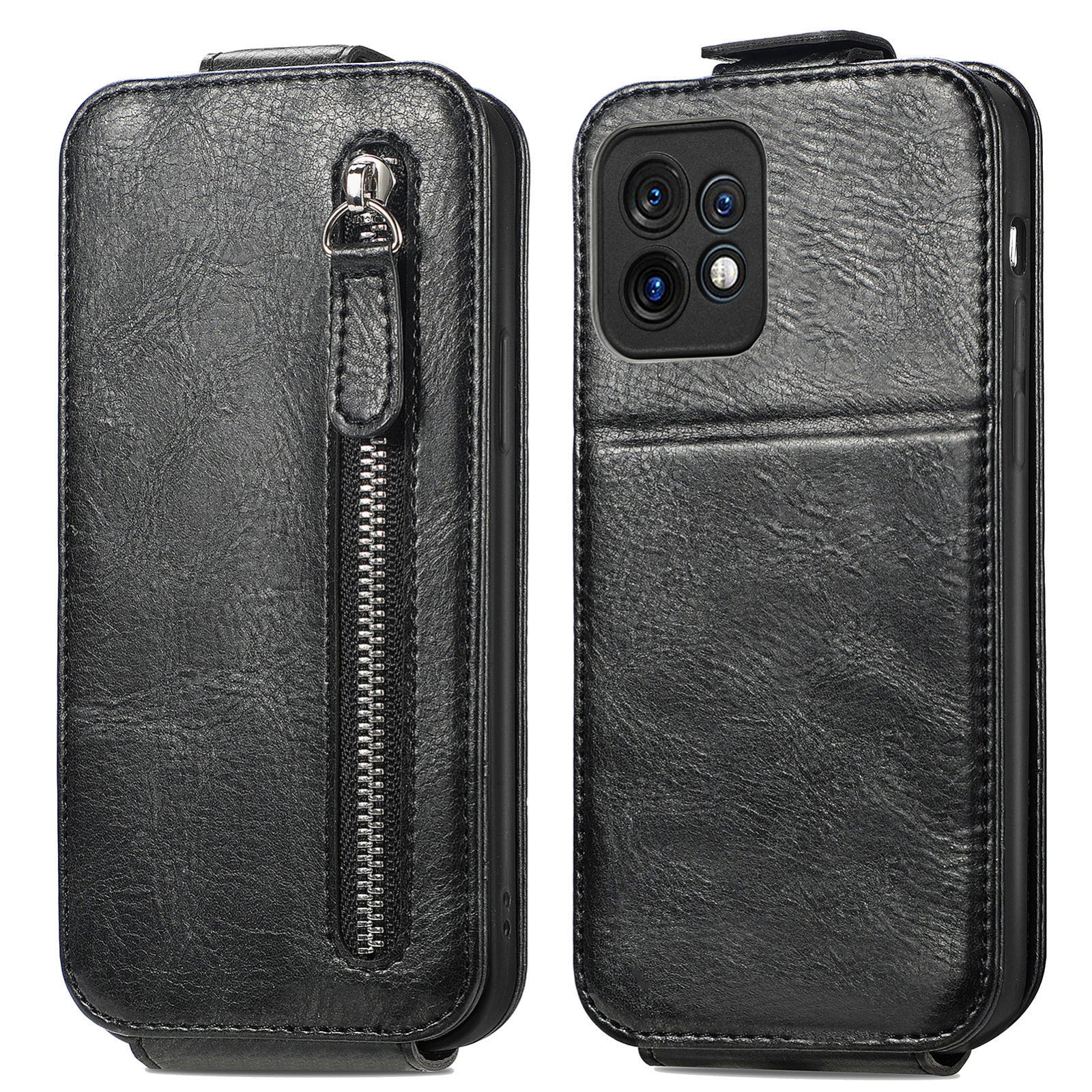 Motorola Moto X40 Zipper Wallet Case - Vertical Flip Leather Phone Cover with Multiple Card Slots and Stand